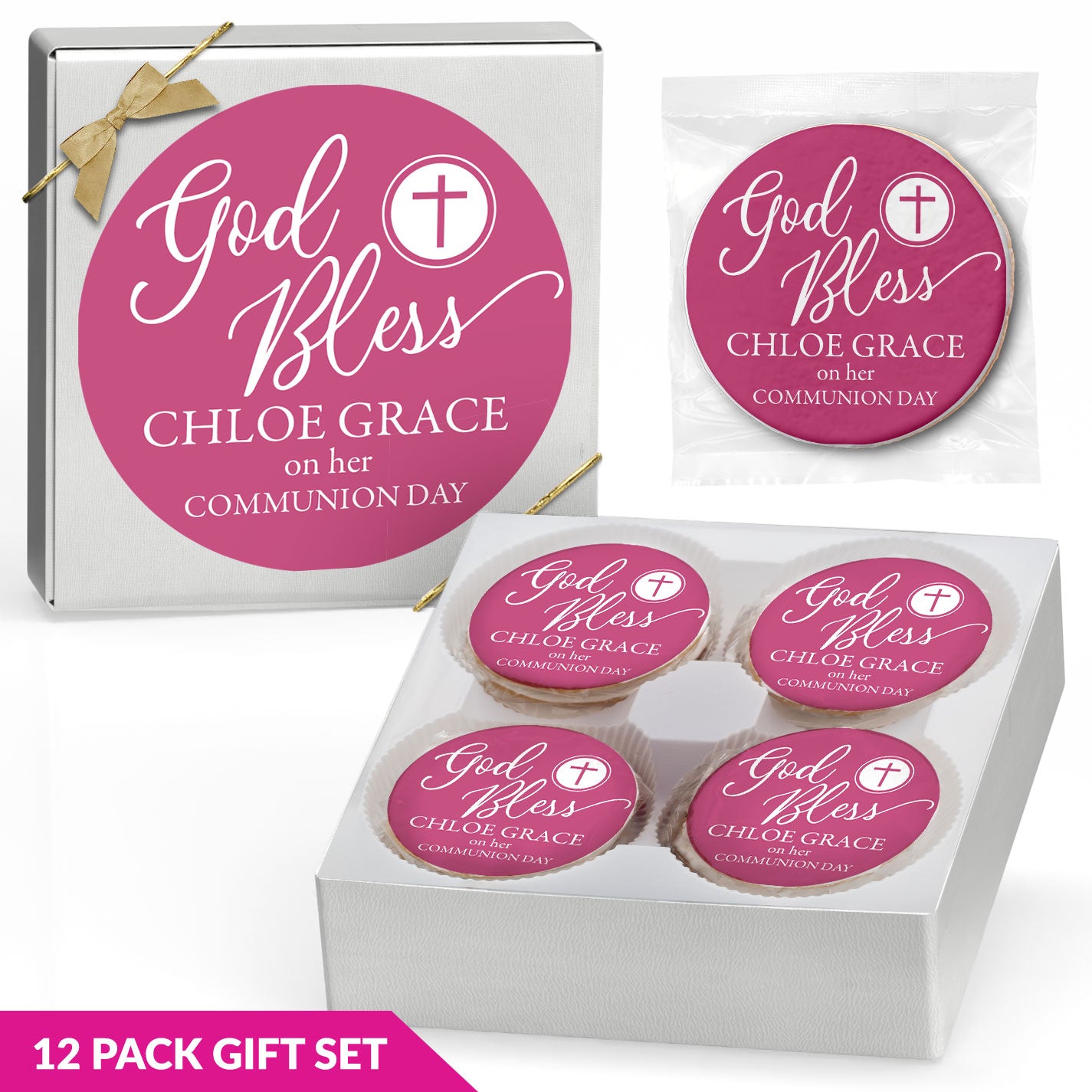 Shop our collection of customizable communion cookies that can be coordinated with your event's theme. Whether you're planning an intimate ceremony or a larger celebration, our cookie favors create memorable keepsakes that guests will appreciate. We also offer corporate and wedding cookie designs for all of life's special moments.