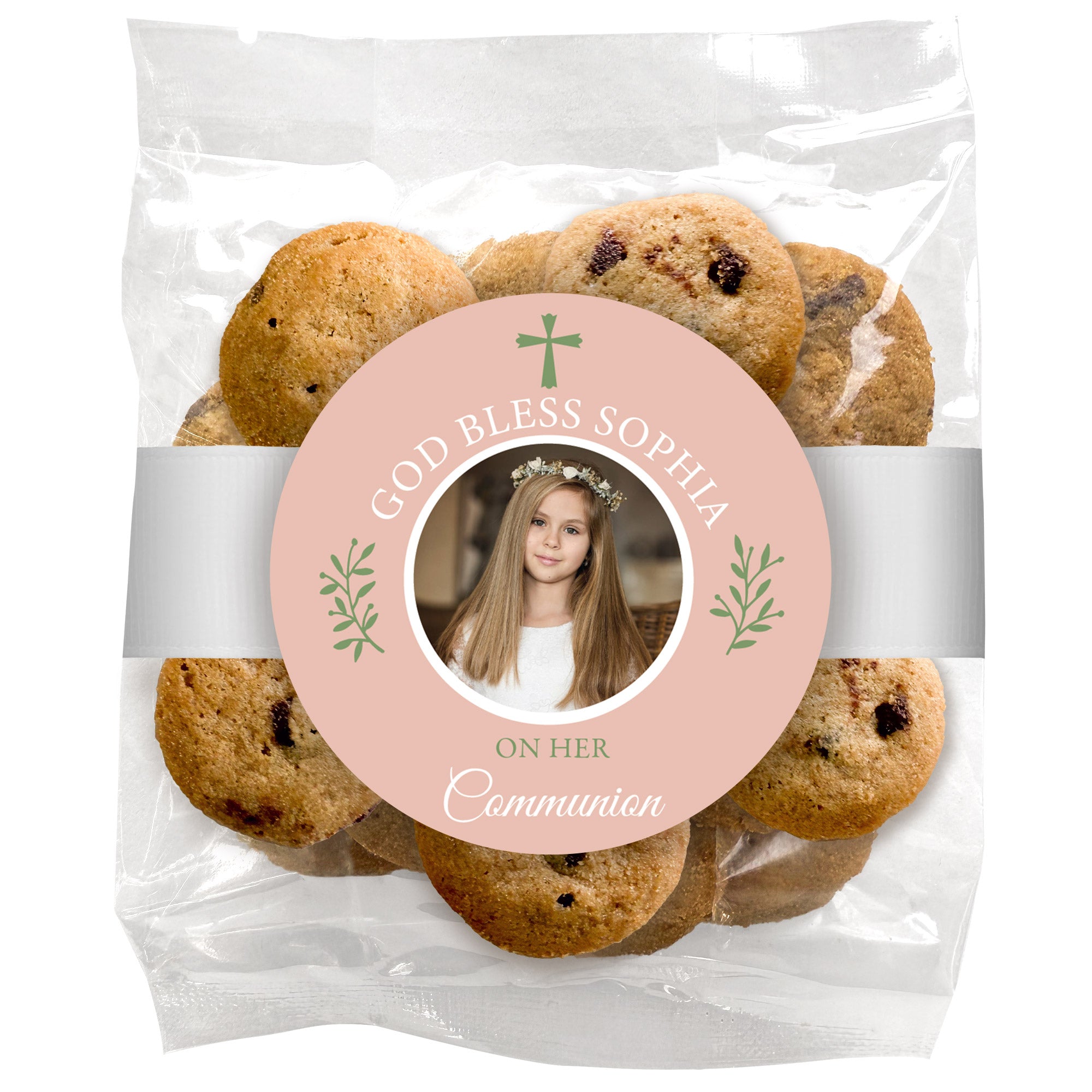 First Communion is one of the most important moments in a child's faith. Our custom First Communion cookies are a beautiful way to mark the occasion. Each cookie is printed with crosses, chalices, rosaries, and other faith-inspired designs using full-color edible ink. Every order is made fresh and ships in 1 to 2 business days. You can also schedule a future delivery date, so your cookies arrive exactly when you need them.