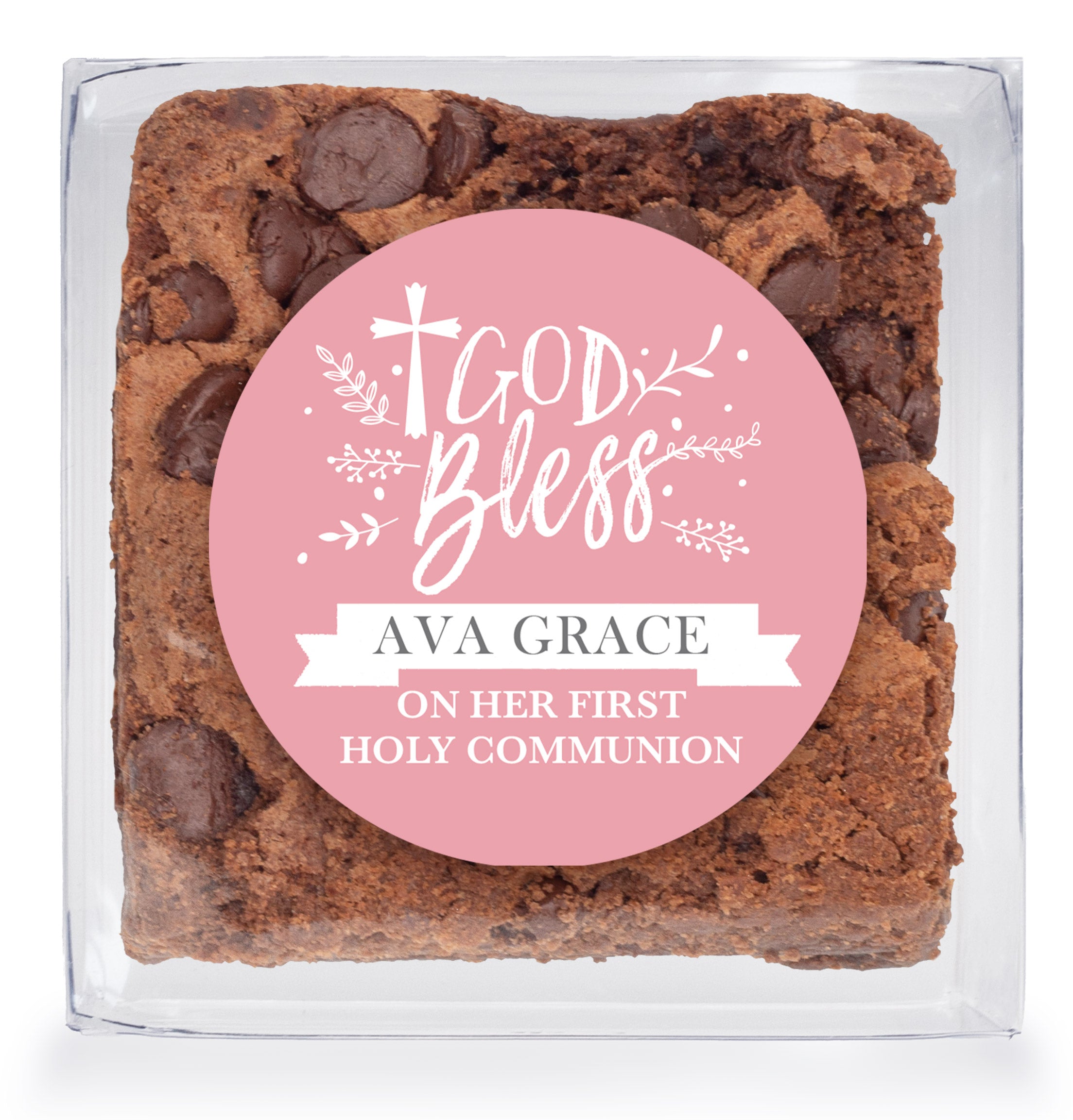 Gourmet Chocolate Chip Fudge Brownies – “God Bless Banner Pink” with Custom Sticker