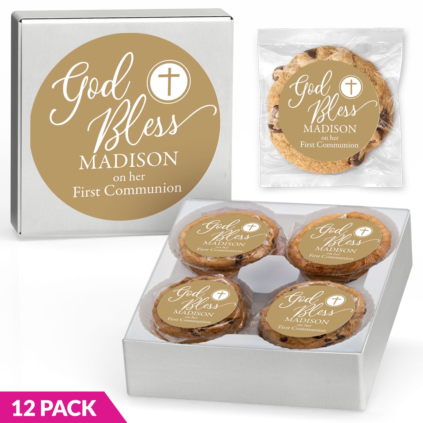 God Bless Simple Cross - Gourmet Chocolate Chip or Variety Pack w/ Full Color Personalized Sticker Gift Box