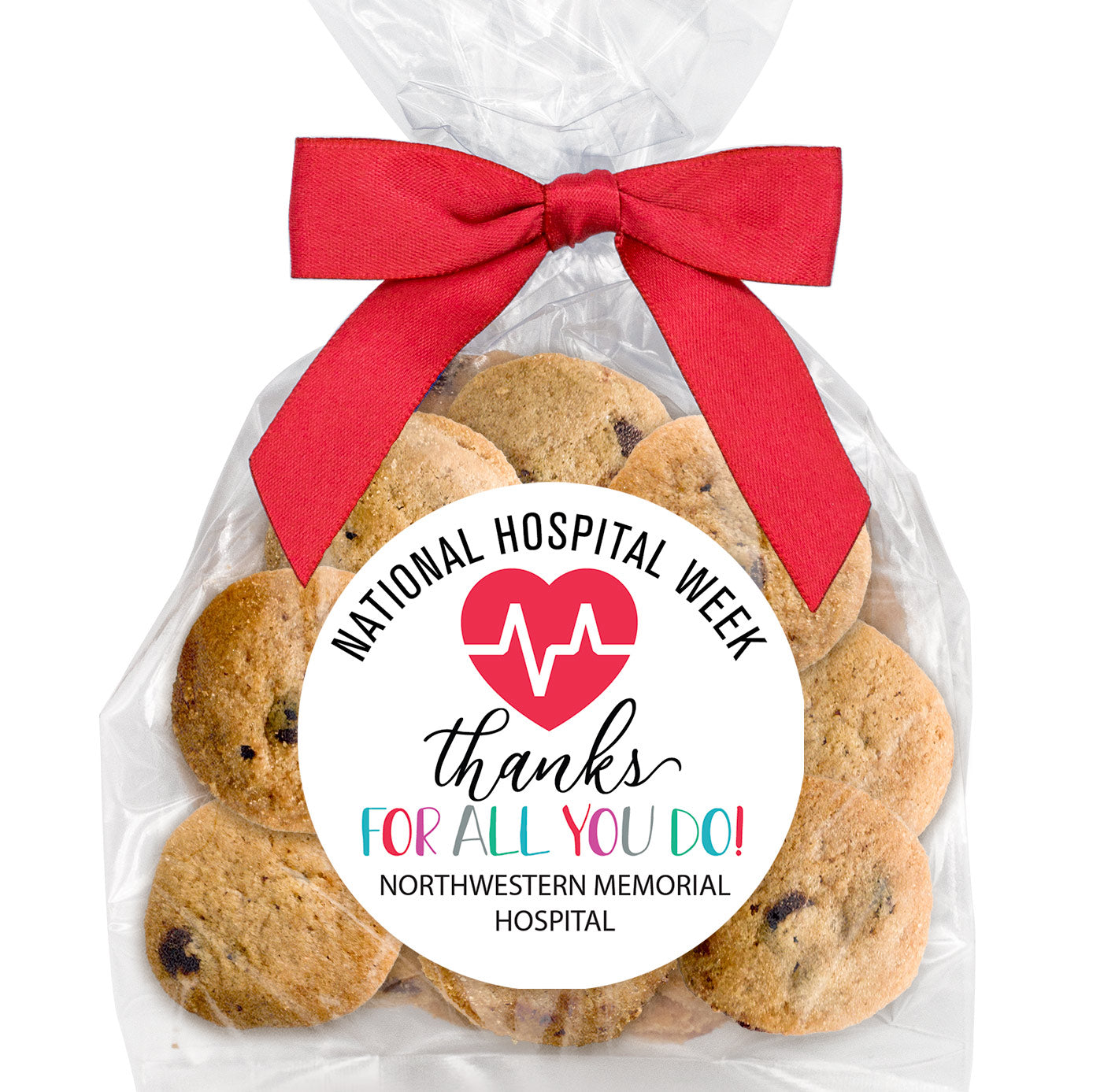 National Hospital Week - Chocolate Chip Mini Cookies (3 oz) W/ Full Color Custom Sticker & Bow Choice
