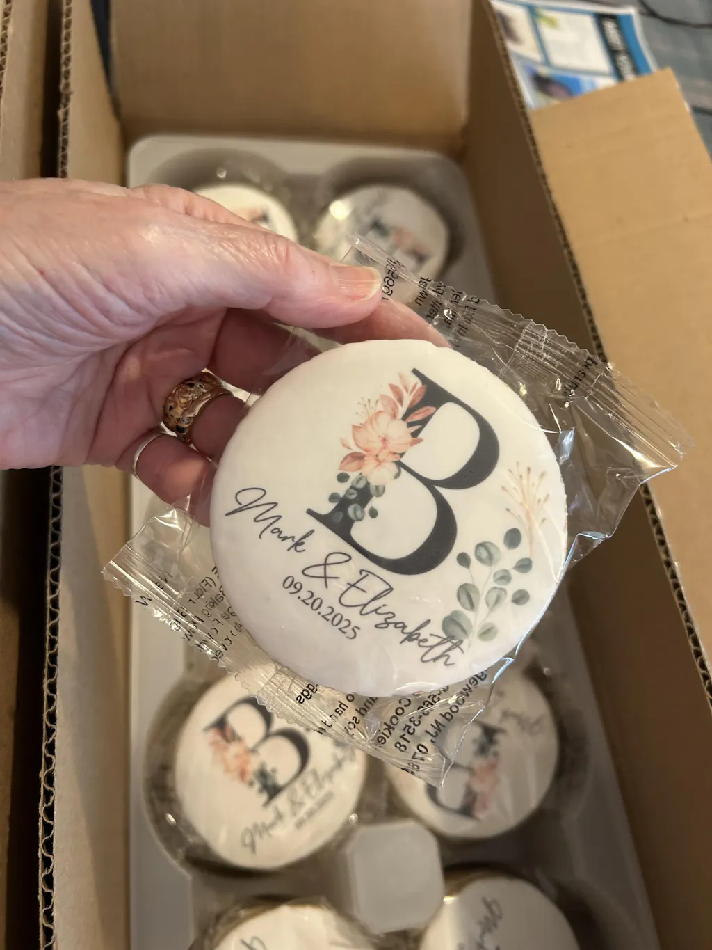 The monogrammed cookies were so good and fresh. They were delivered to me the day before the wedding, individually wrapped was so convenient to put on the tables. A great addition to our Pittsburgh Cookie Table!!!