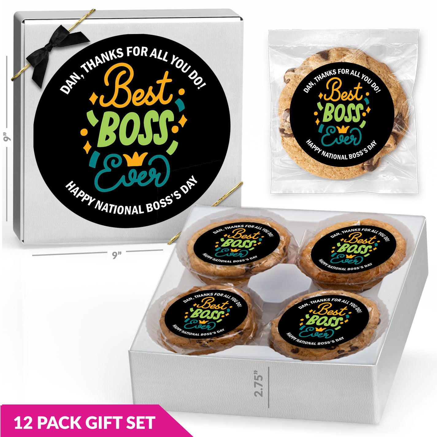 Thanks Boss - Gourmet Chocolate Chip or Variety Pack w/ Full Color Personalized Sticker Gift Set
