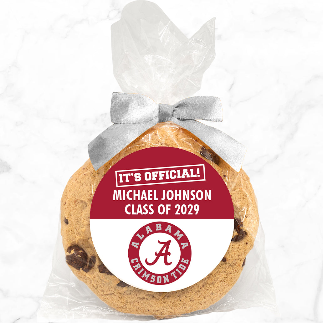 - Individually wrapped custom-printed sugar cookies packaged in a favor bag w/ a colored bow choice.