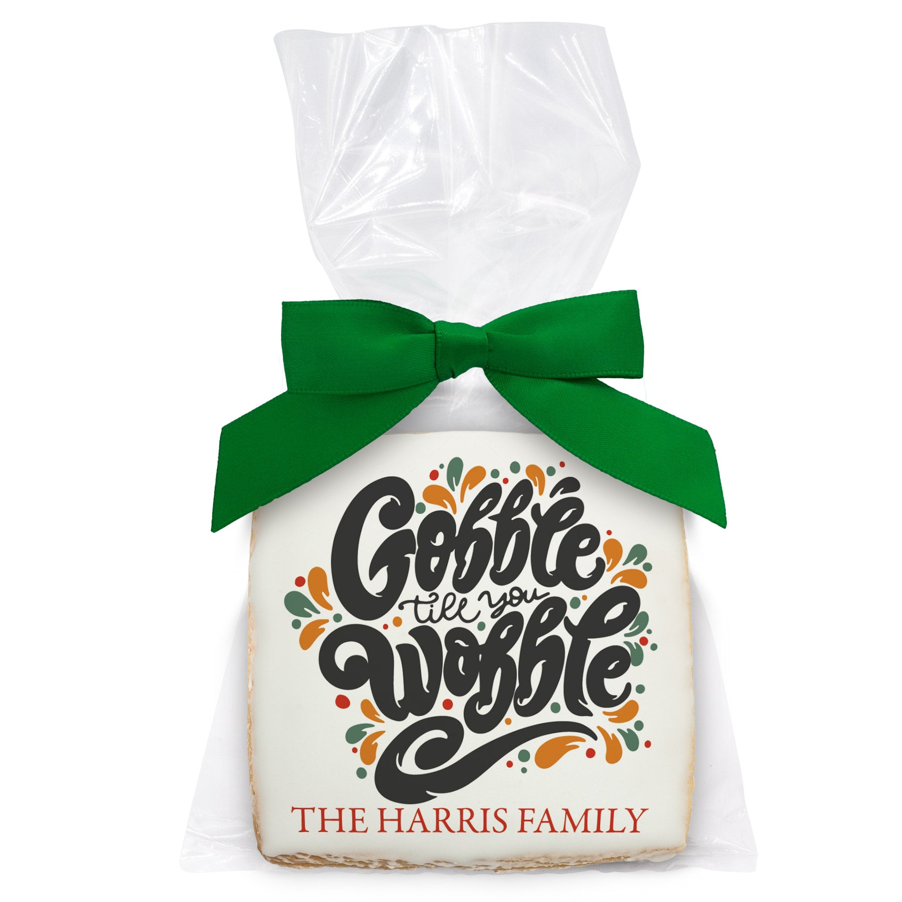 Gobble till you Wobble - Personalized Direct Print On Square Sugar Cookie w/ Gift Bag & Matching Bow