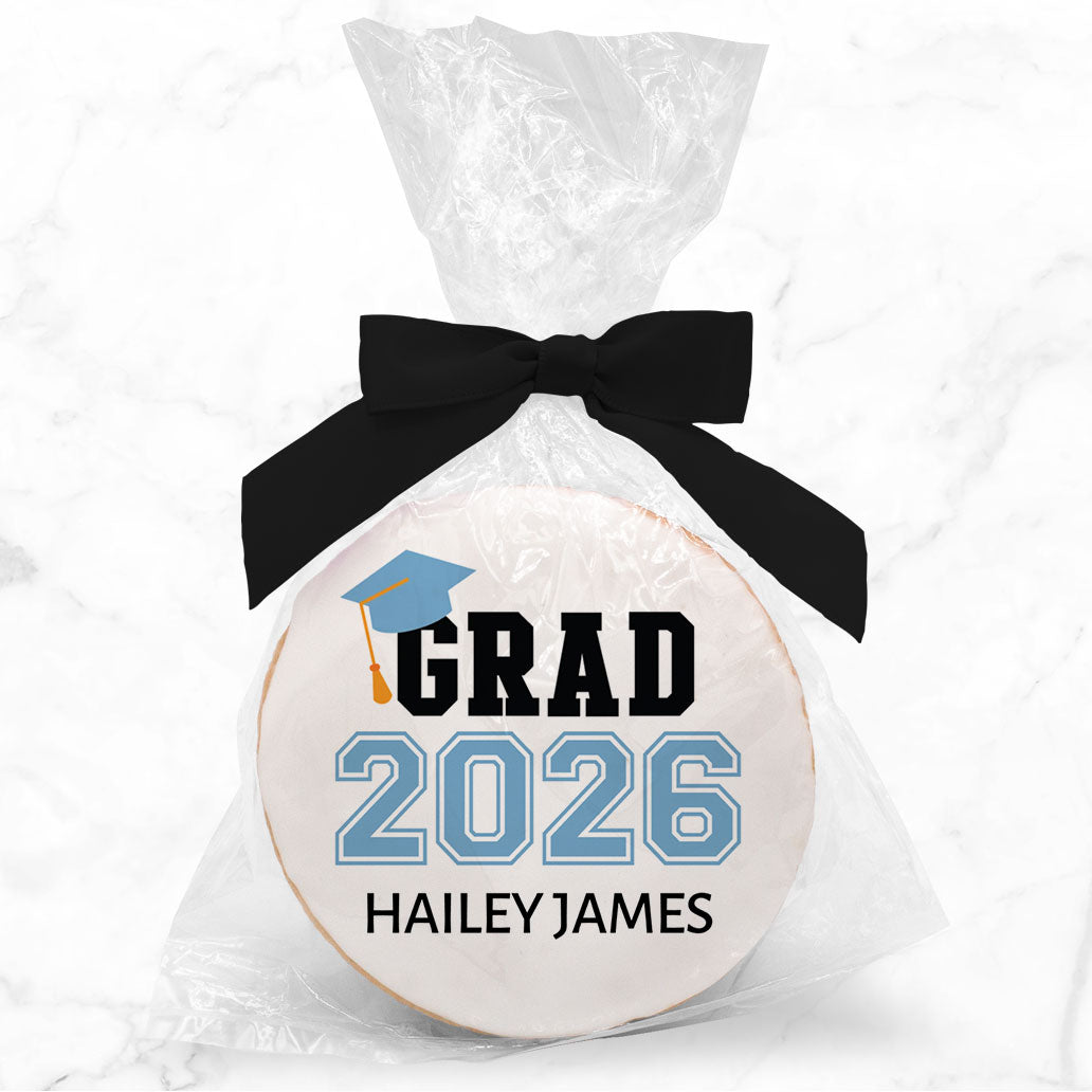 Grad Year & Cap - Gourmet Chocolate Chip Or Variety Pack W/ Full Color Personalized Sticker w/ Gift Bag & Matching Bow