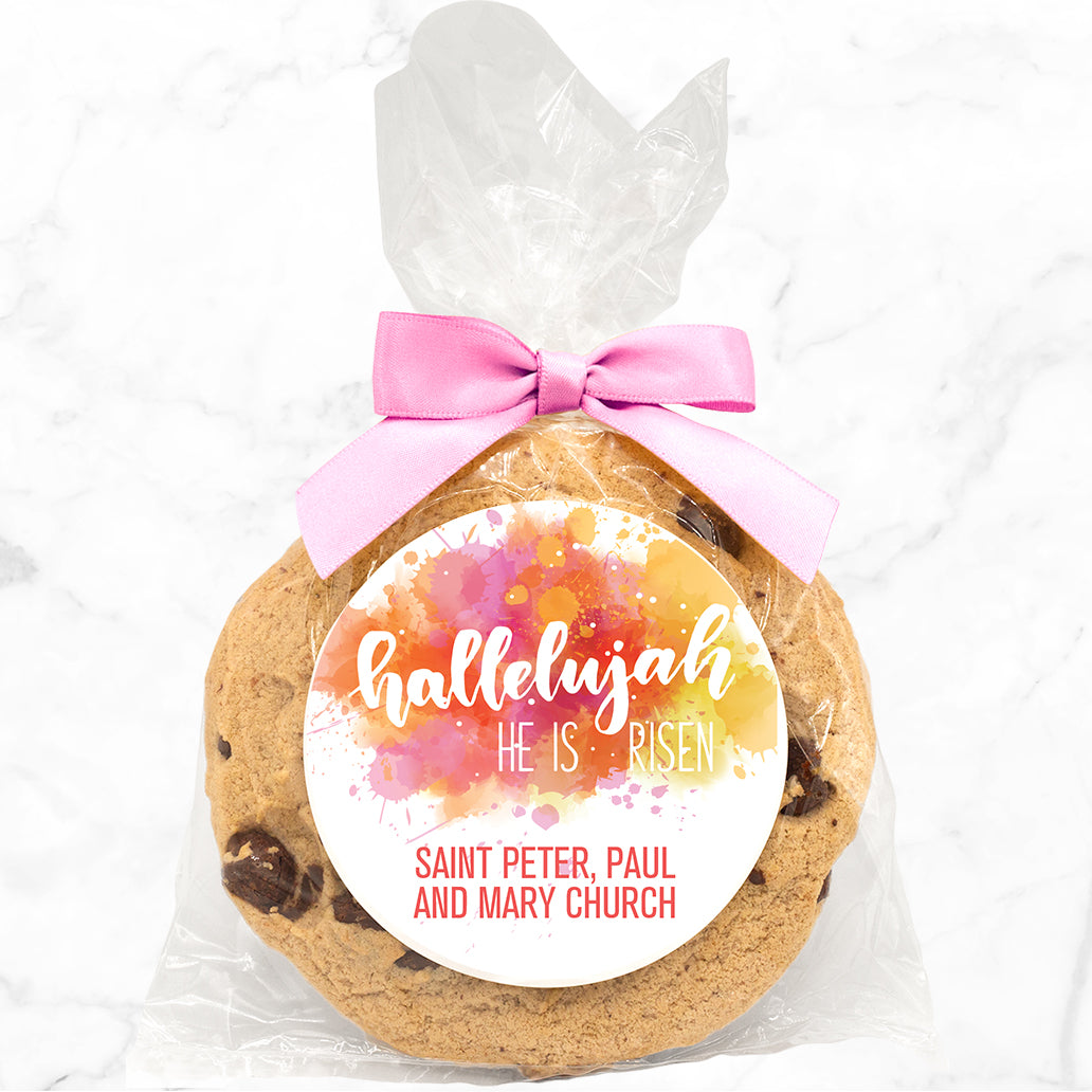 Hallelujah He is Risen - Gourmet Chocolate Chip Or Variety Pack W/ Full Color Personalized Sticker w/ Gift Bag & Matching Bow