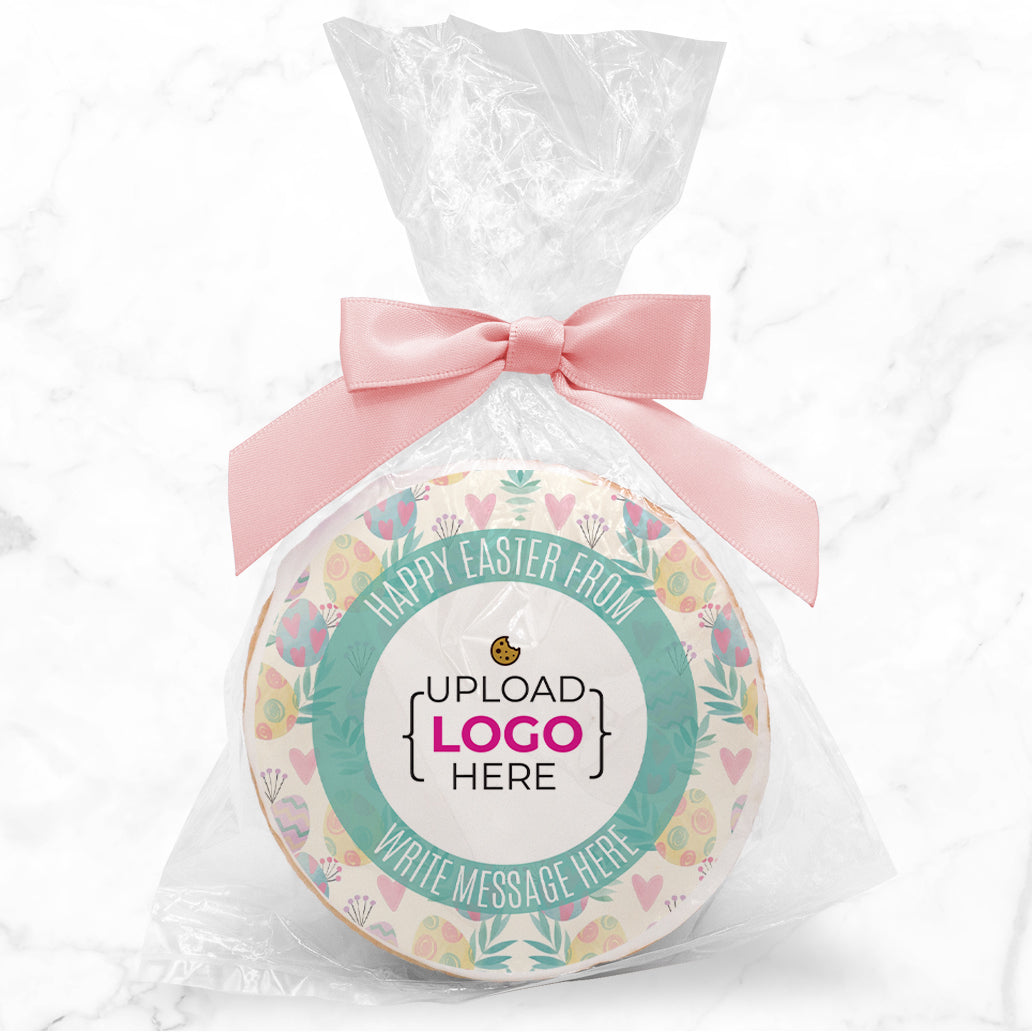 Happy Easter Logo Upload & Message - Gourmet Chocolate Chip Or Variety Pack W/ Full Color Personalized Sticker w/ Gift Bag & Matching Bow