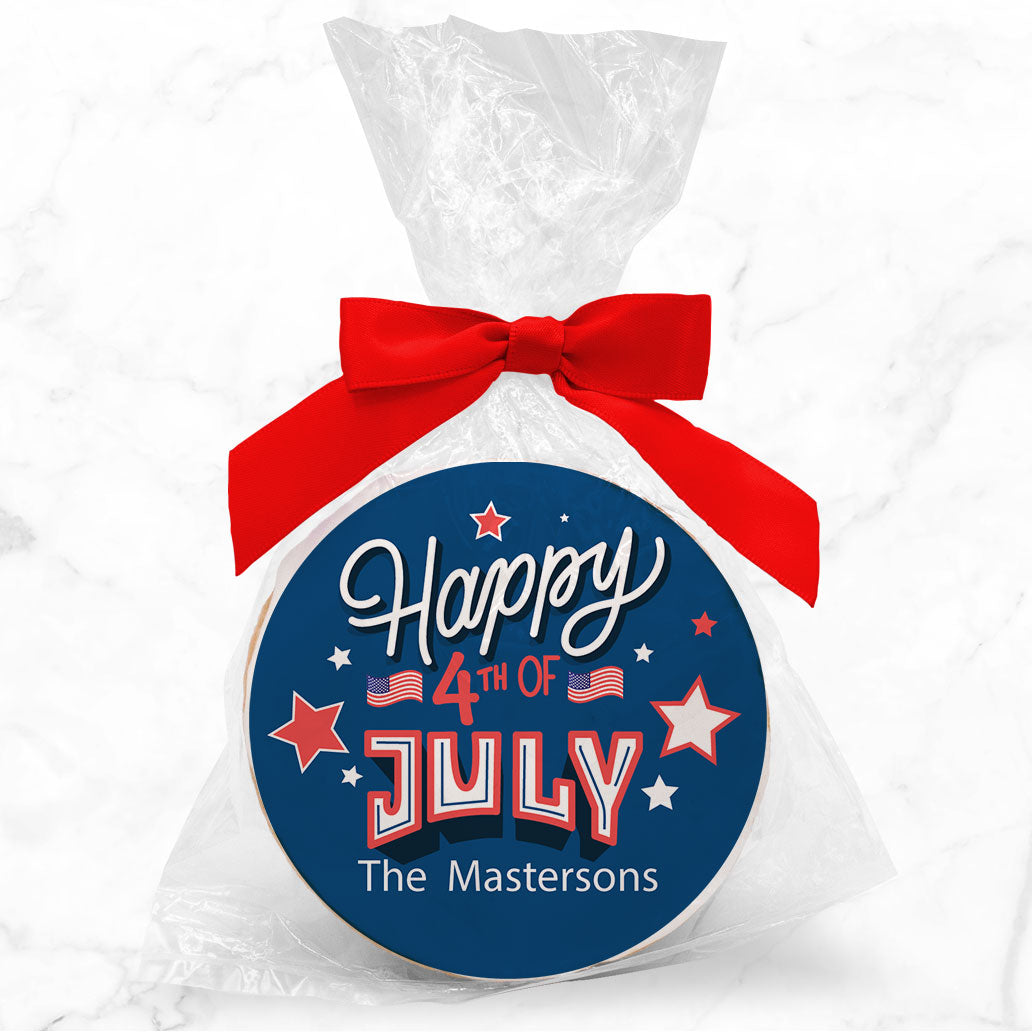 Happy Fourth of July - Personalized Direct Print On Round Sugar Cookie w/ Gift Bag & Matching Bow