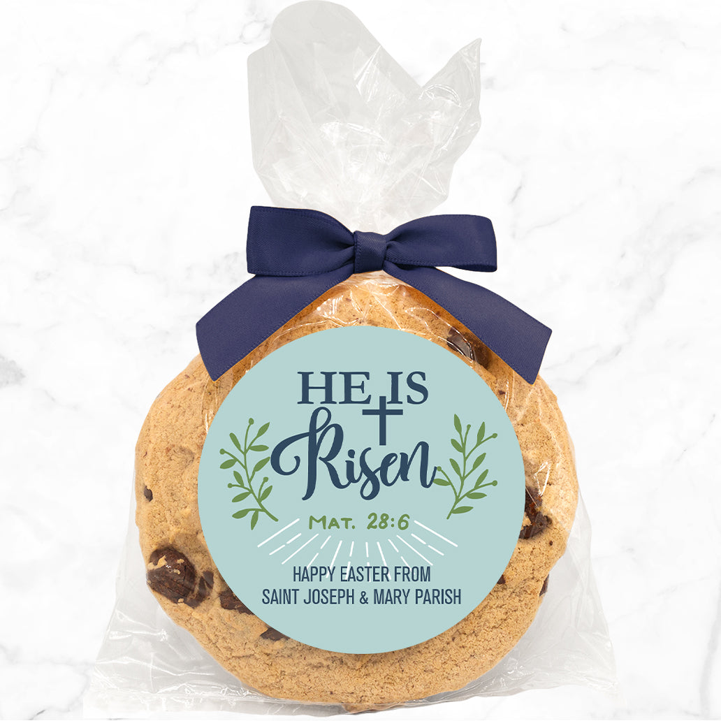 He is Risen - Gourmet Chocolate Chip Or Variety Pack W/ Full Color Personalized Sticker w/ Gift Bag & Matching Bow