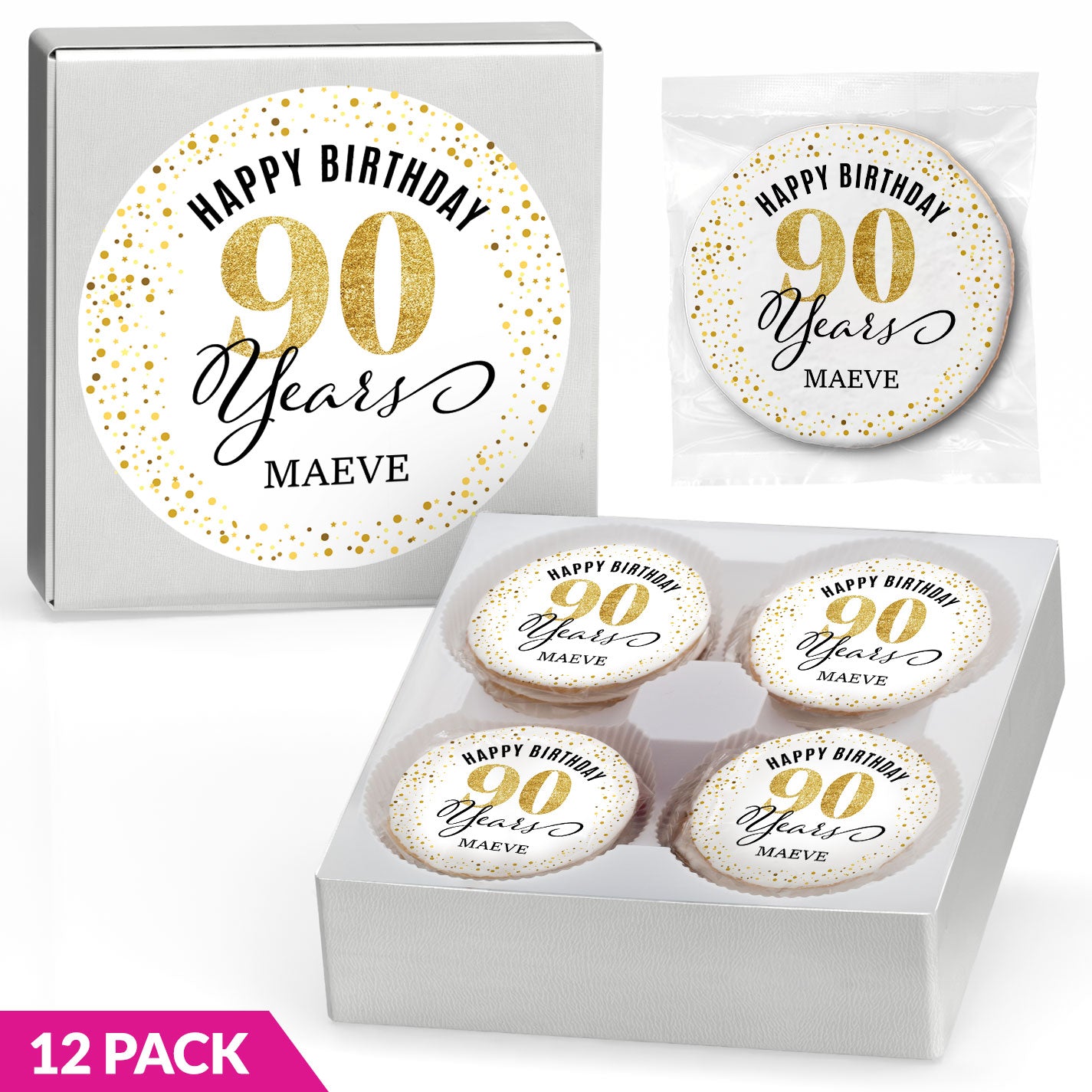 Happy Milestone Birthday Gold (Age Choice)- Personalized Direct Print on Round Sugar Cookie Gift Set