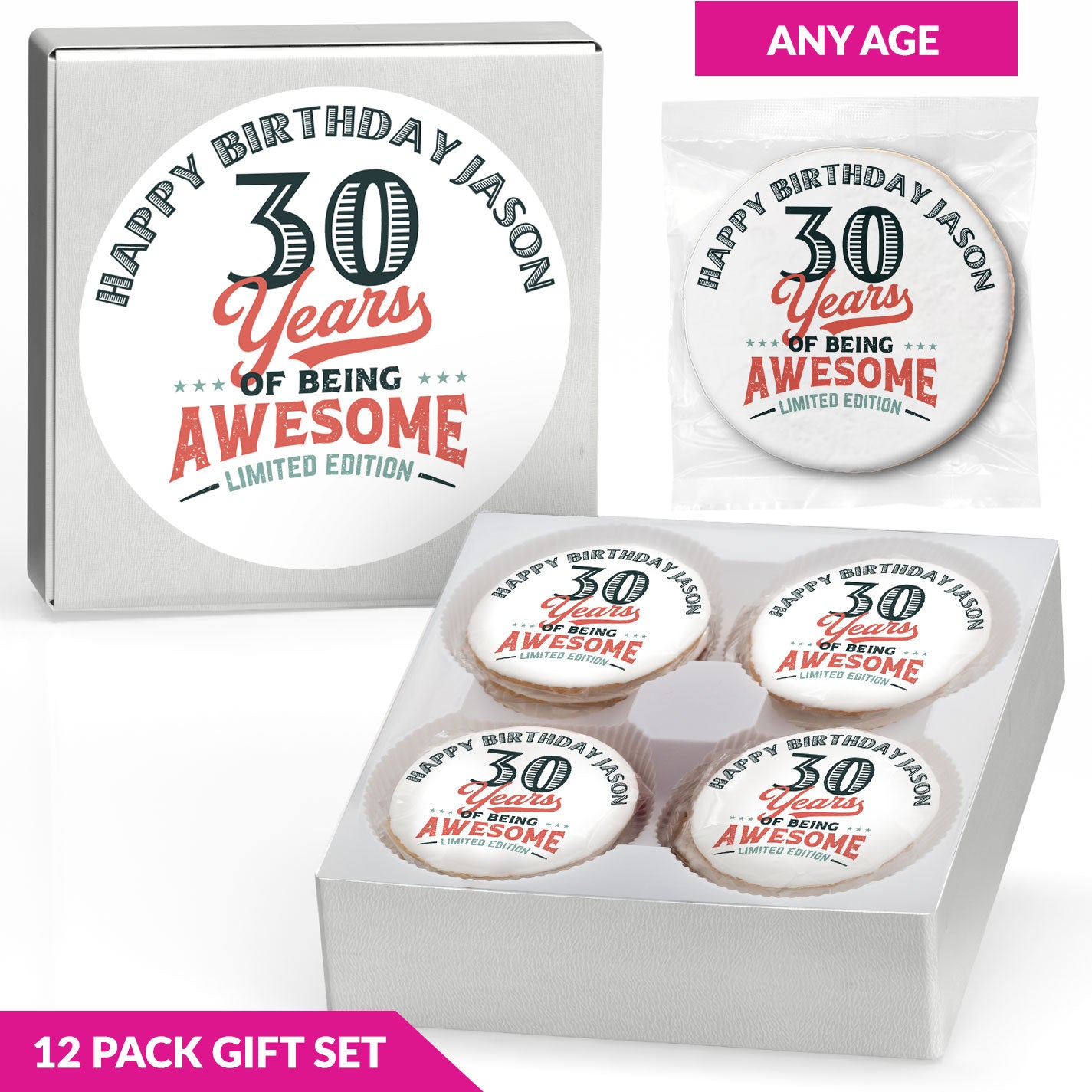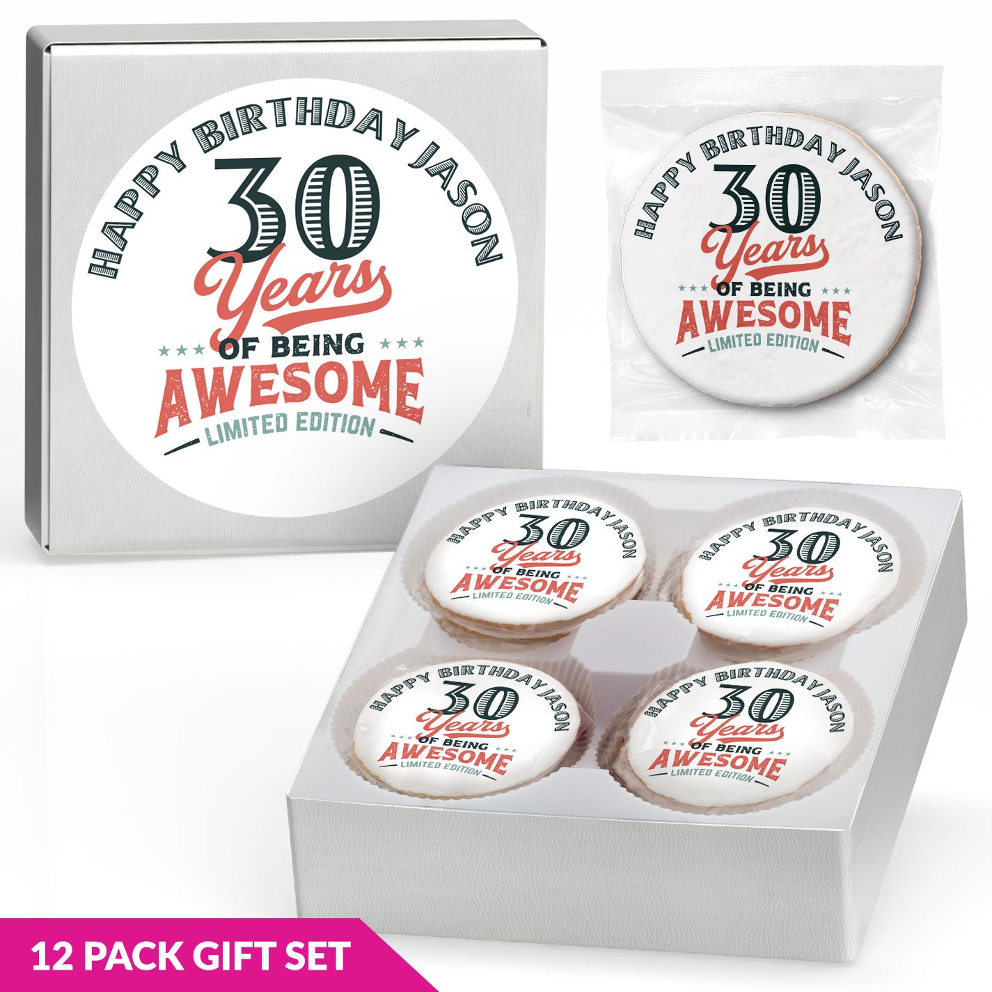 (X) Years of being awesome - Personalized Direct Print on Round Sugar Cookie Gift Set