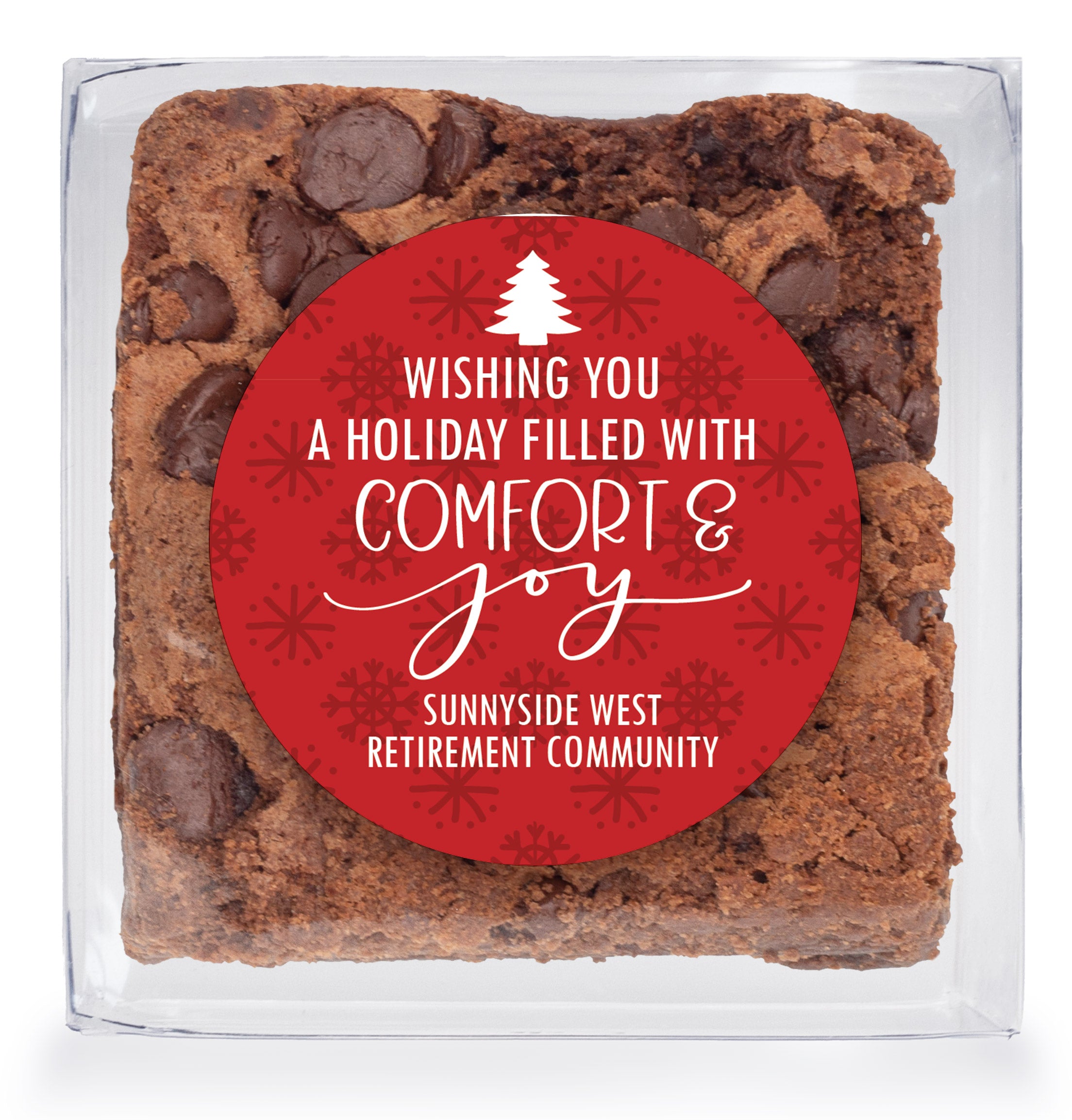 Comfort and Joy Snowflakes - Chocolate Chip Fudge Brownies W/Full Color Personalized Sticker