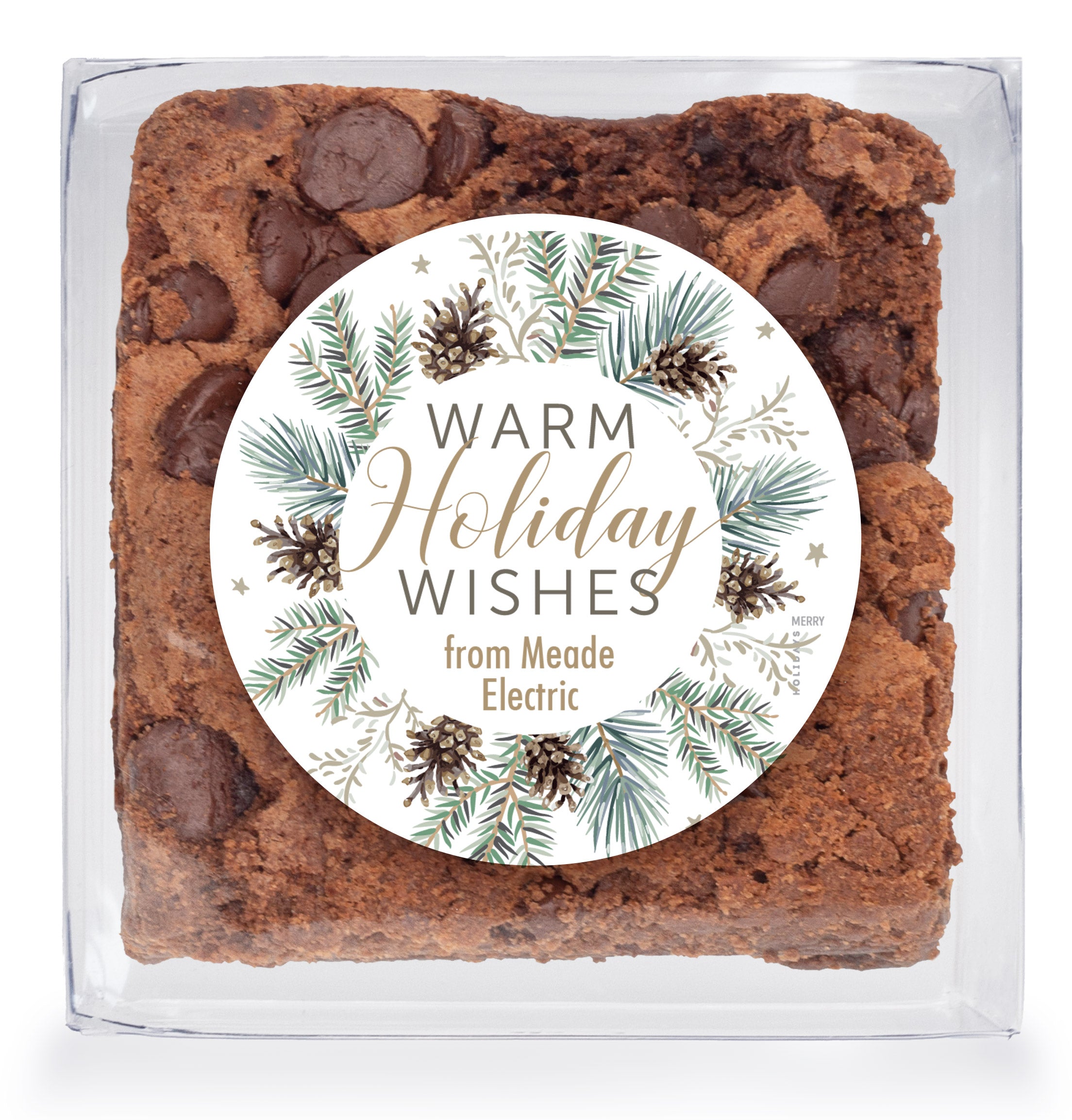 Warm Wishes Pine wreath - Chocolate Chip Fudge Brownies W/Full Color Personalized Sticker