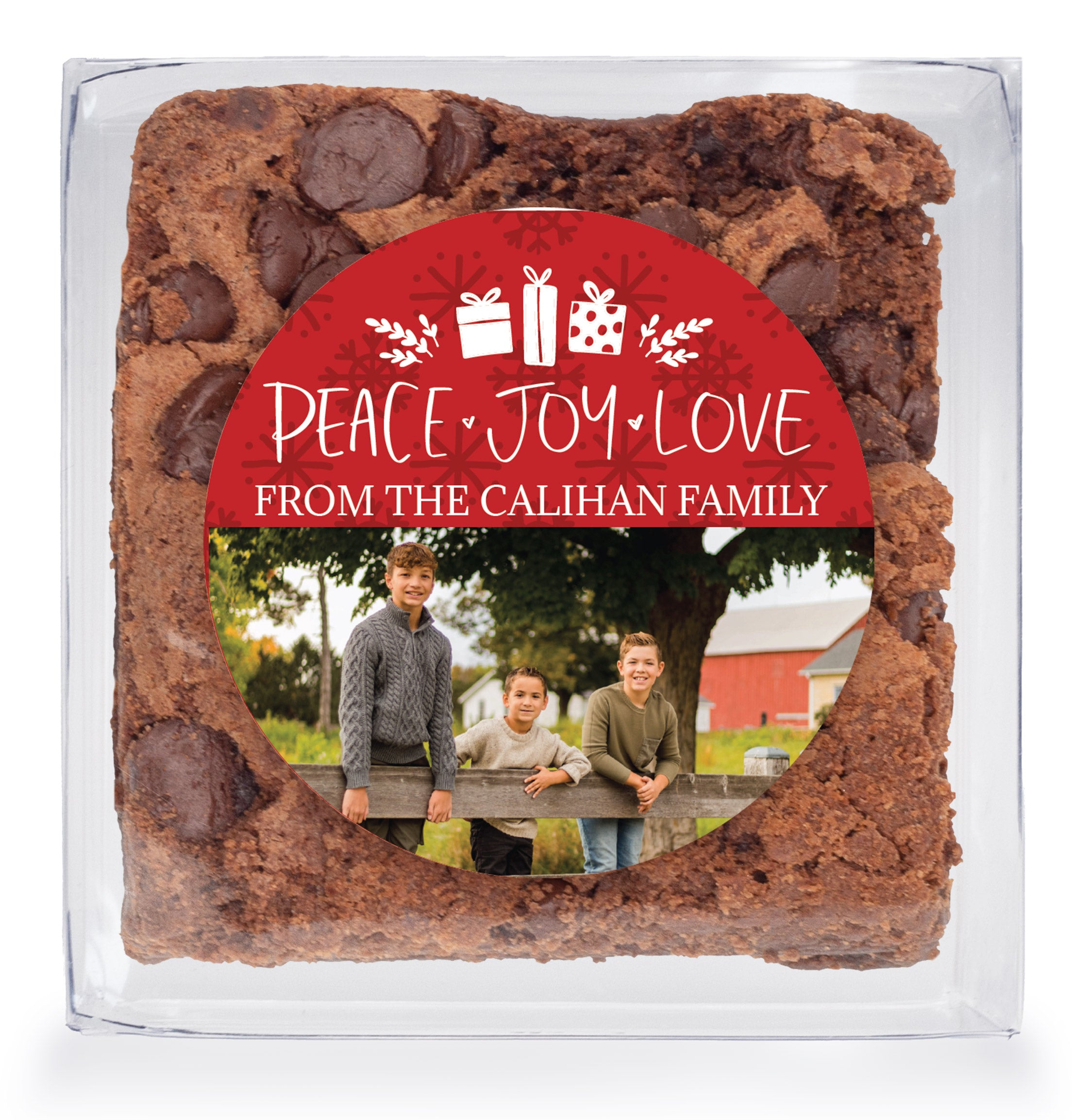 Peace Love Joy Photo Upload - Chocolate Chip Fudge Brownies W/Full Color Personalized Sticker