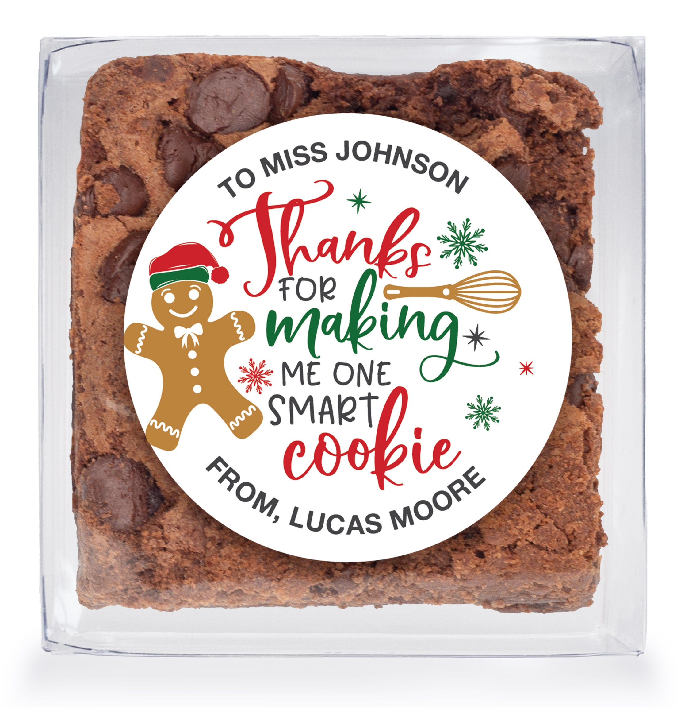 Thanks for making me One Smart Cookie - Chocolate Chip Fudge Brownies W/Full Color Personalized Sticker