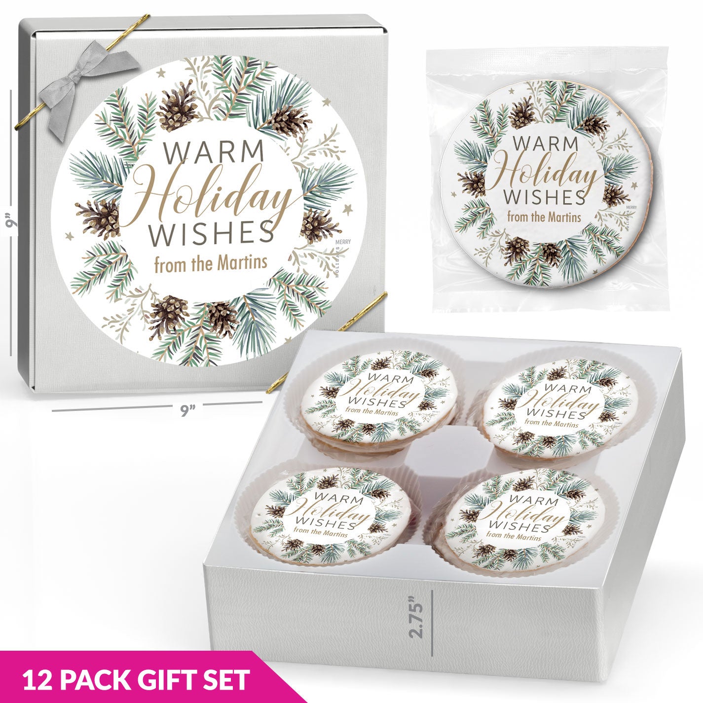 Choose from our classic rectangle sugar cookies with direct-print royal icing or a variety of decadent flavors with colorful stickers. Our decorated cookies make ideal corporate gifts that stand out from ordinary treats. Add characters, festive images, or your corporate logo to create memorable cookie boxes that everyone will love. Contact us for custom holiday cookies orders or shipping information to ensure your Christmas cookie gift arrives fresh for the holidays!