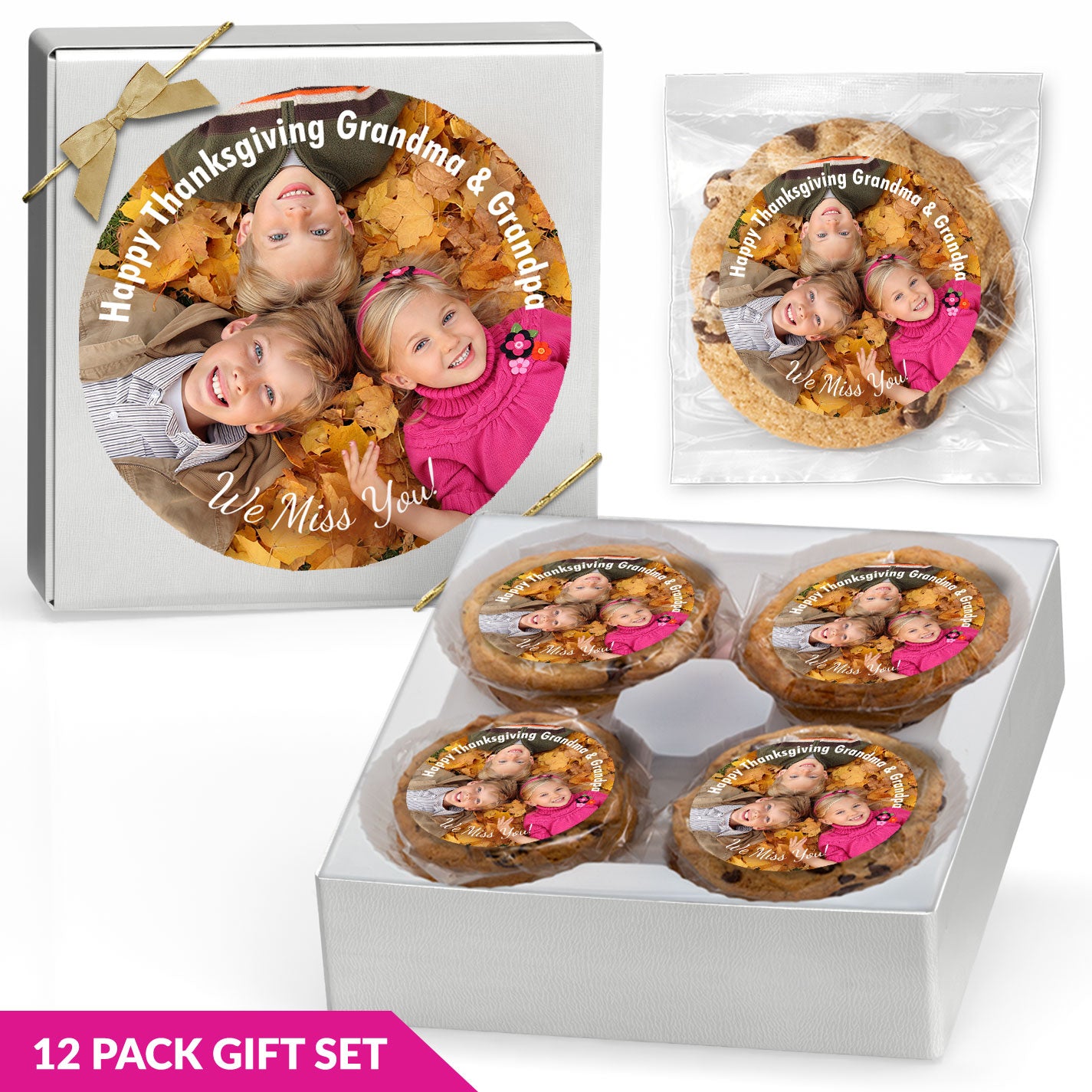 Spread holiday cheer with our delectable Christmas cookies, perfect for gifts, corporate events, and festive treats. Each cookie is individually wrapped and can be personalized with your favorite photo, logo, or special message. Shop our selection of gourmet cookie gifts featuring popular flavors like Chocolate Chip, Red Velvet, and S'mores, all available in custom holiday designs. For those with dietary needs, we offer gluten-free and vegan options too!