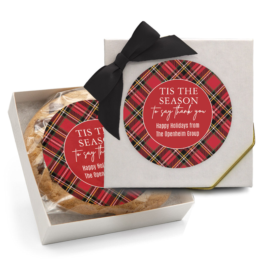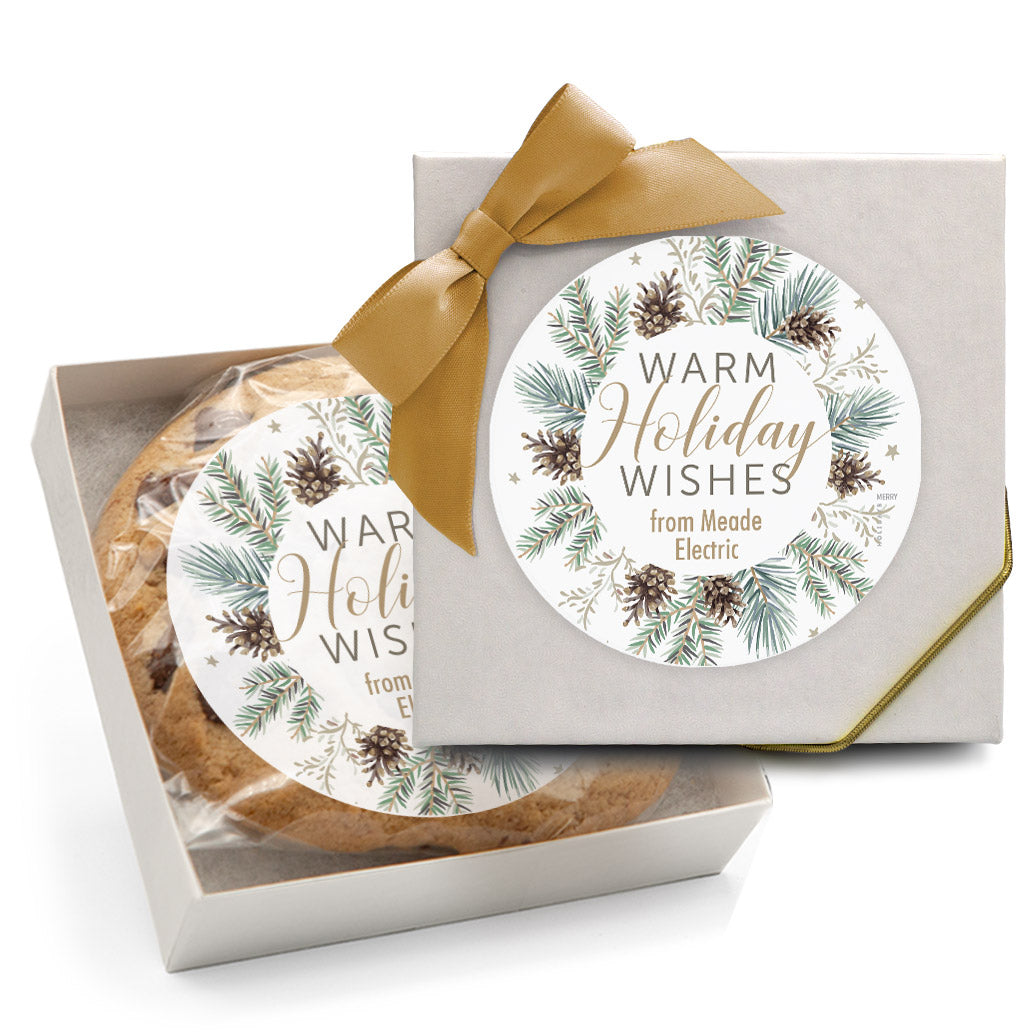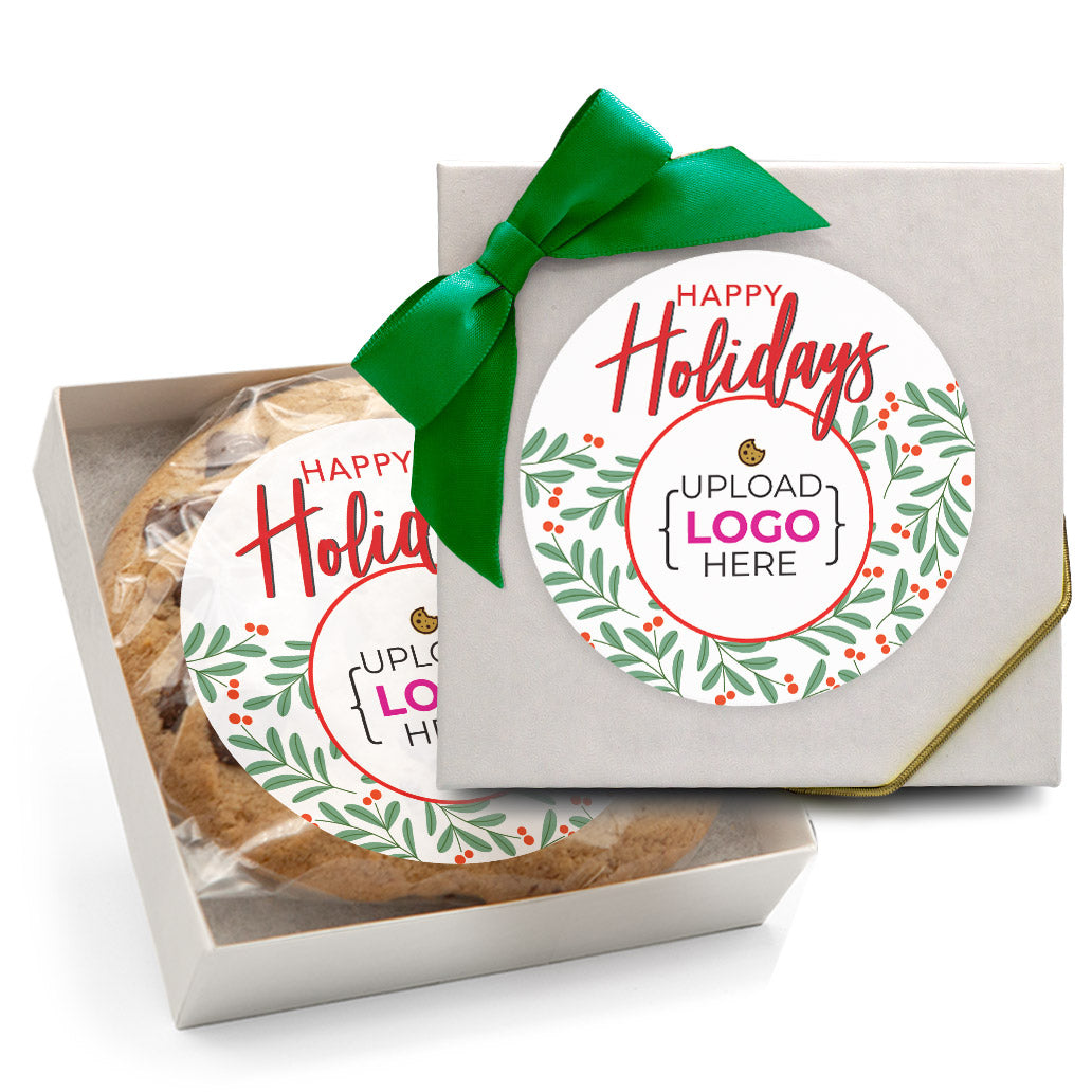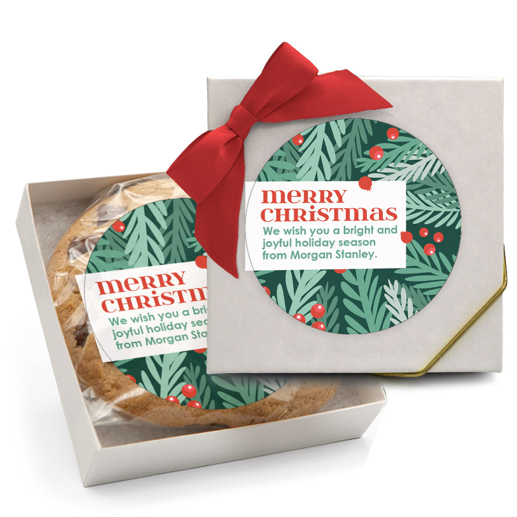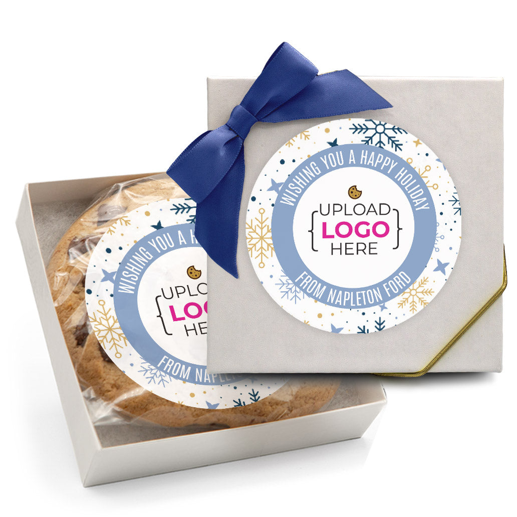 Our Christmas Favor Boxes are designed to make your holiday moments feel special. Choose a custom royal icing sugar cookie printed with your design, or from our gourmet flavors like White Chocolate Macadamia Nut, Oatmeal Raisin, S’mores, or classic Chocolate Chip. Each box comes with a holiday ribbon and seasonal packaging that feels warm, cheerful, and gift ready.