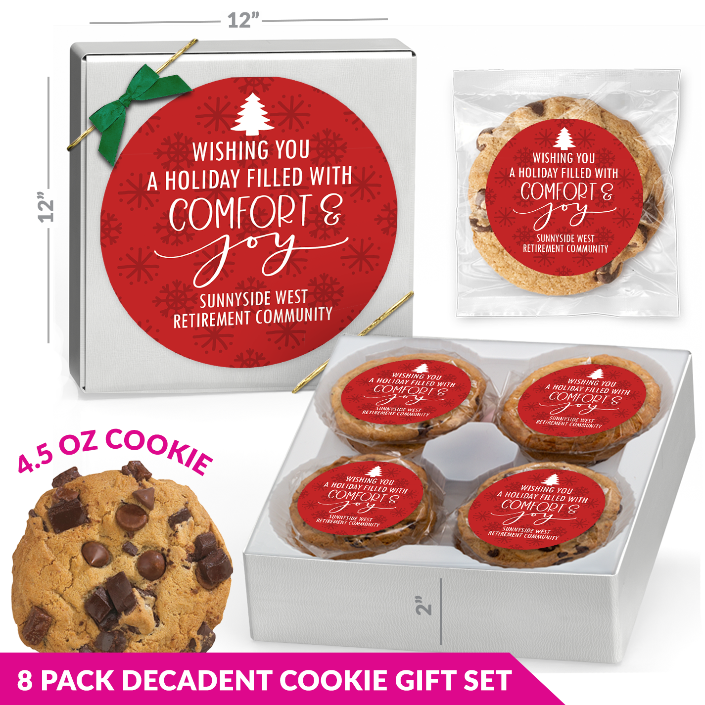 Comfort and Joy Snowflakes - Custom Decadent Cookie 8-Pack Gift Set w/ Full Color Personalized Sticker