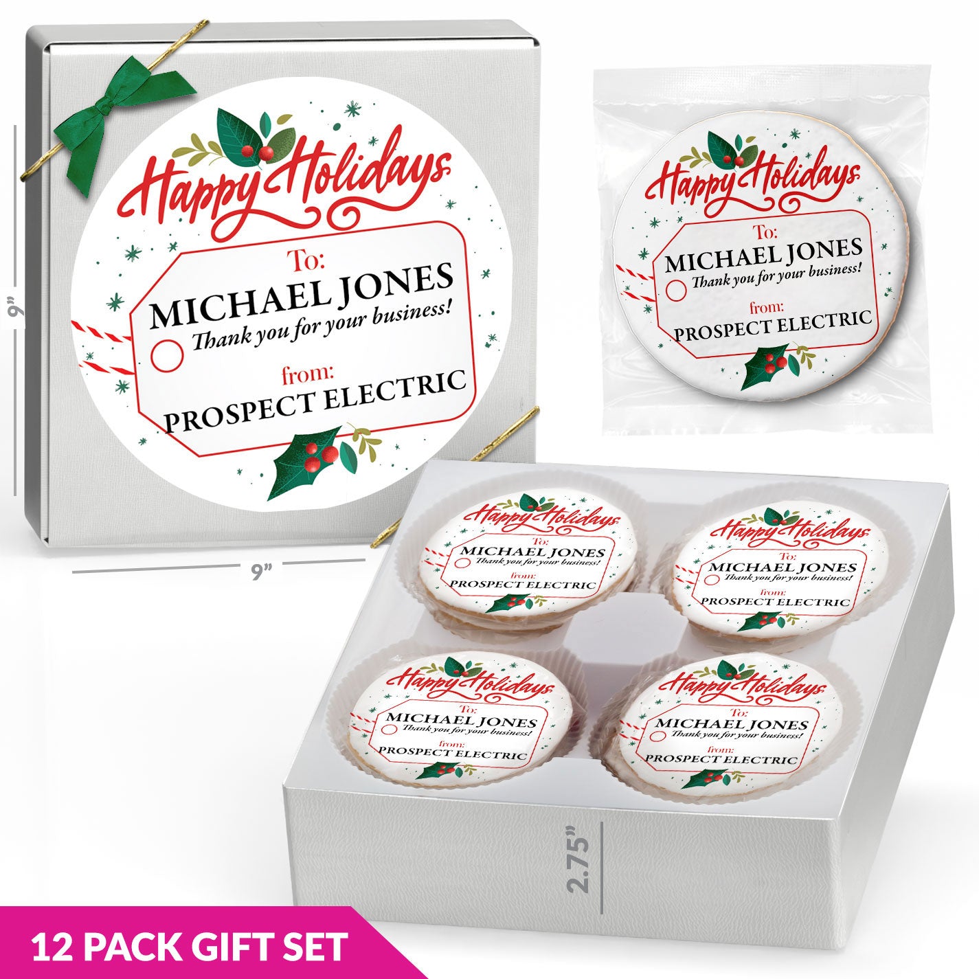 Happy Holidays Gift Tag - Personalized Direct Print on Round Sugar Cookie Gift Set