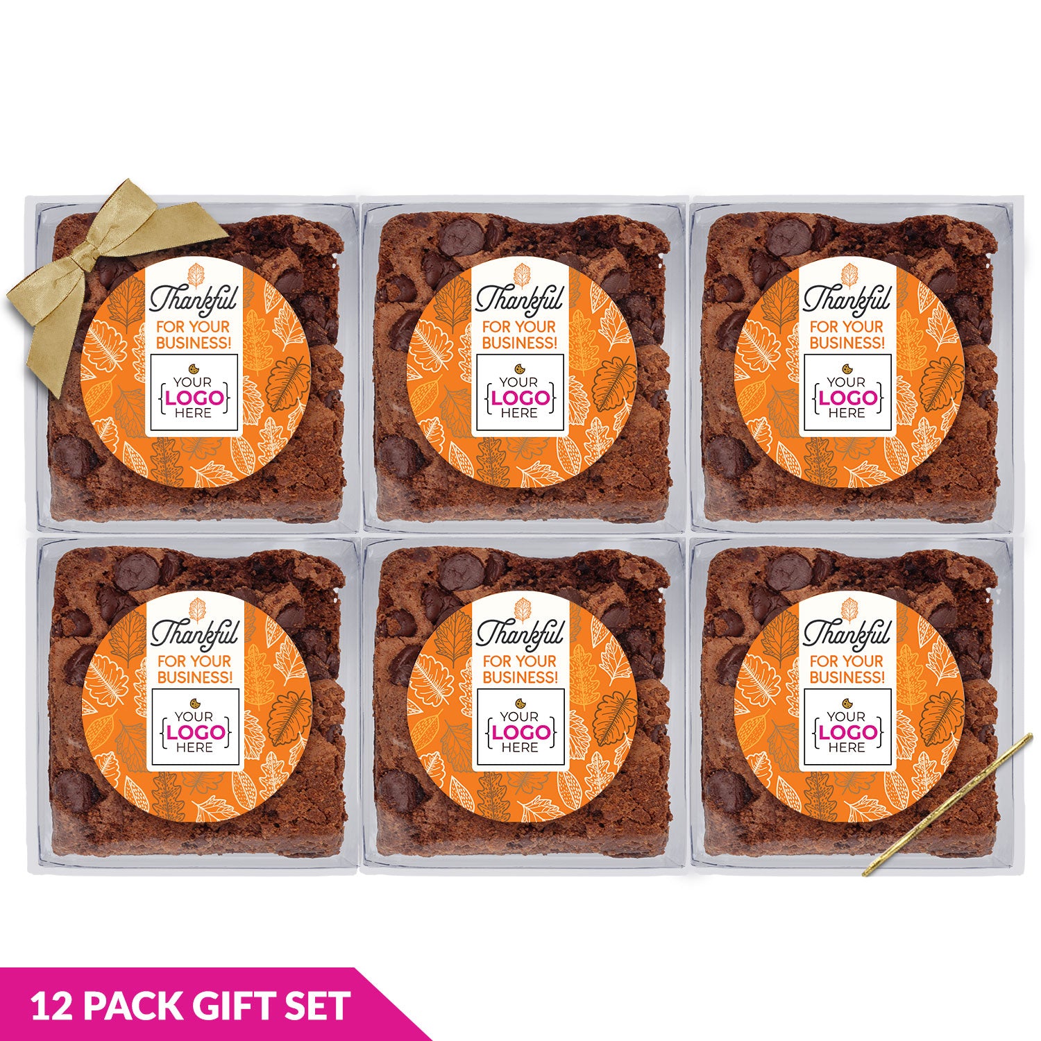Thanksgiving Logo Upload - Chocolate Chip Fudge Brownies W/Full Color Personalized Sticker Gift Set