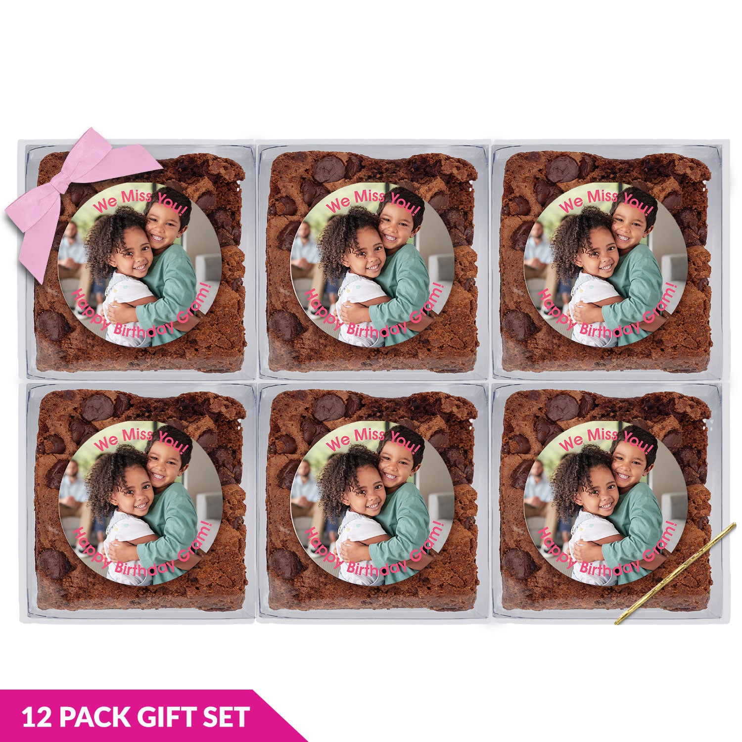 Create your own Photo & Message - Chocolate Chip Fudge Brownies W/Full Color Personalized Sticker Gift Set