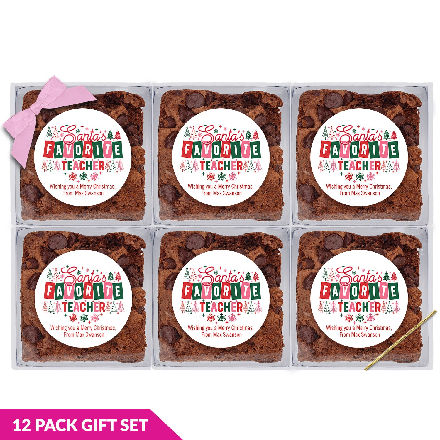 Santa's Favorite Teacher - Chocolate Chip Fudge Brownies W/Full Color Personalized Sticker Gift Set