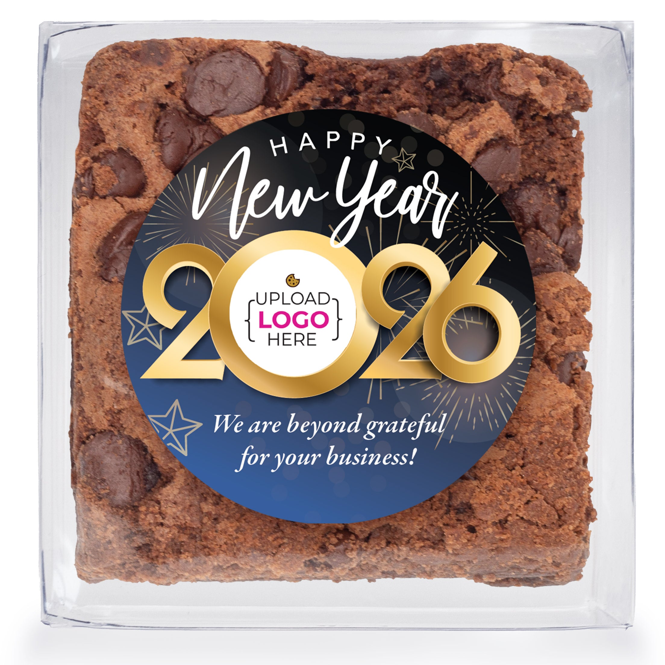 Each Brownie is in a clear plastic box & personalized with a full color sticker.