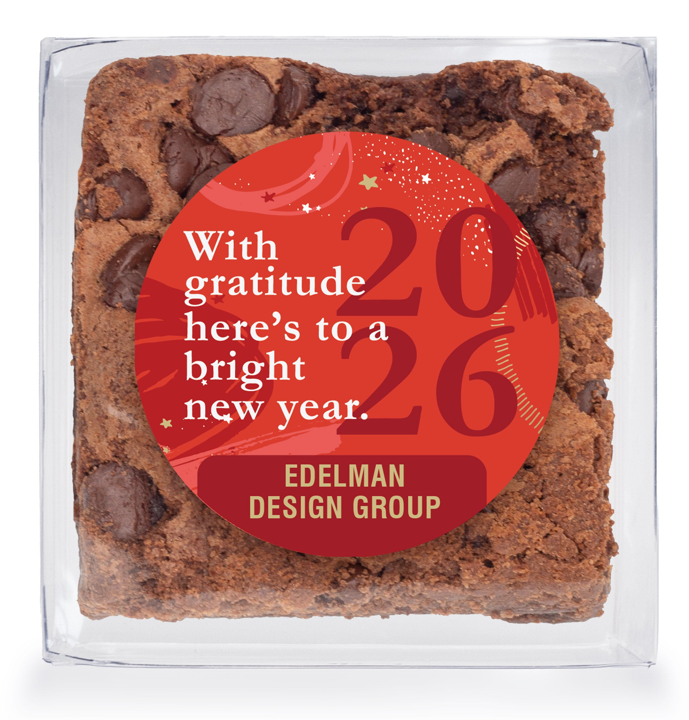 Gratitude for a Bright New Year - Chocolate Chip Fudge Brownies W/Full Color Personalized Sticker