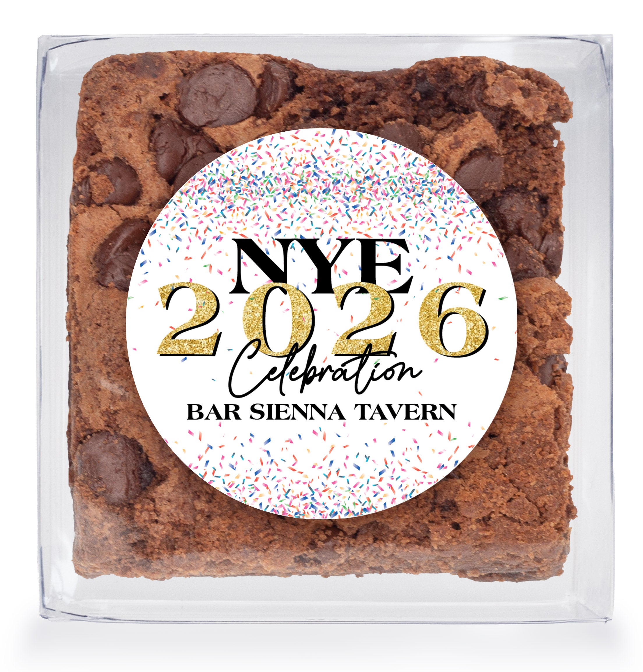 NYE Celebration - Chocolate Chip Fudge Brownies W/Full Color Personalized Sticker