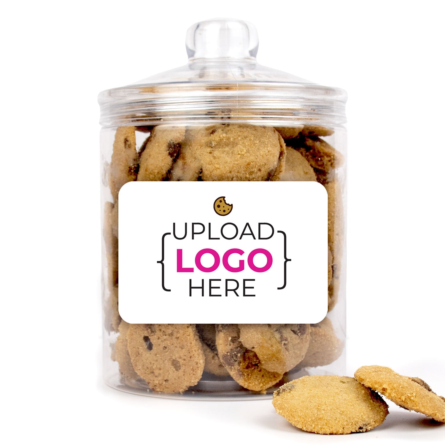 Personalized Corporate Logo Upload & Message - Custom Cookie Jar filled with Bite-Sized Cookie Flavor Choice