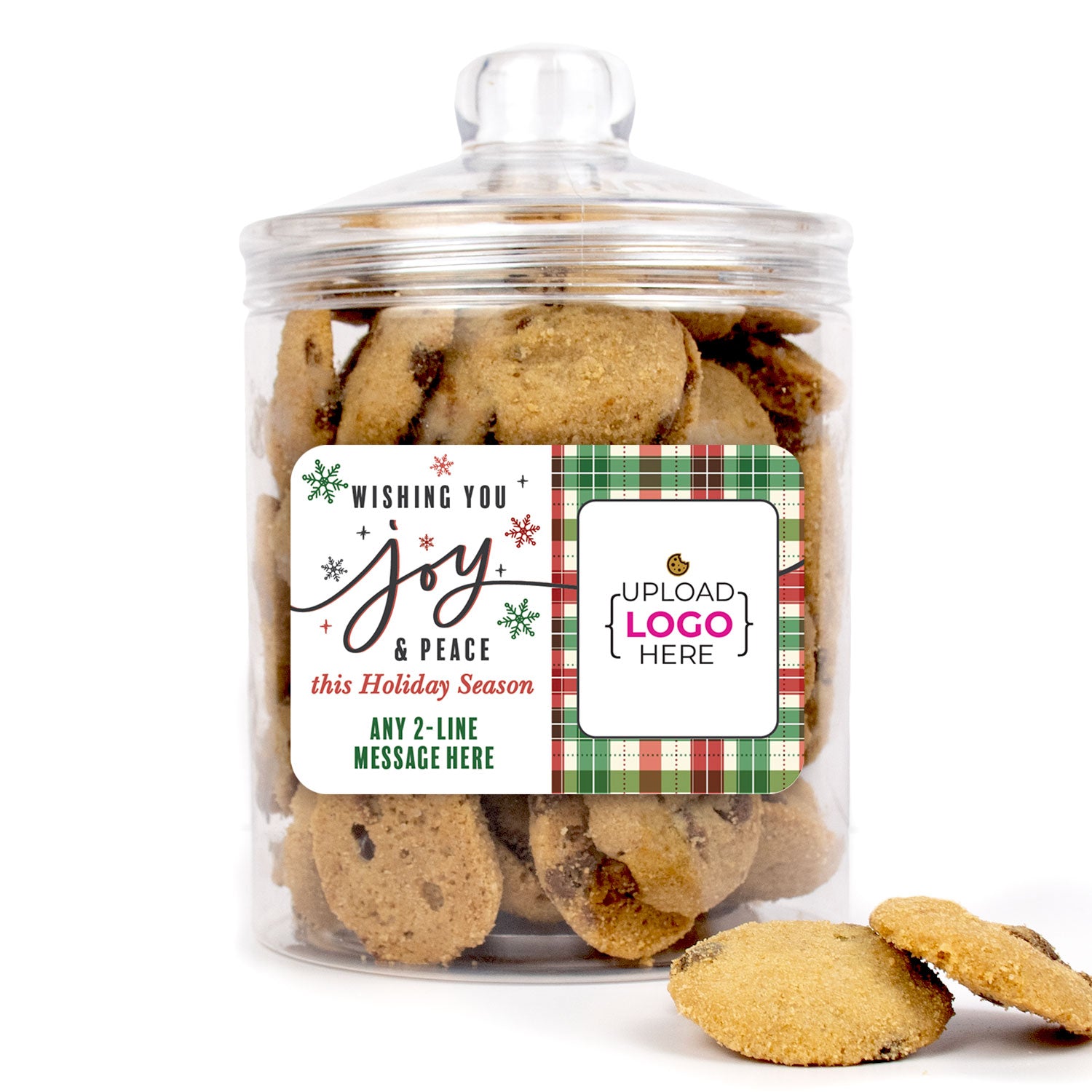 Happy Holidays Berry leaves Logo Upload - Custom Cookie Jar filled with Bite-Sized Cookie Flavor Choice