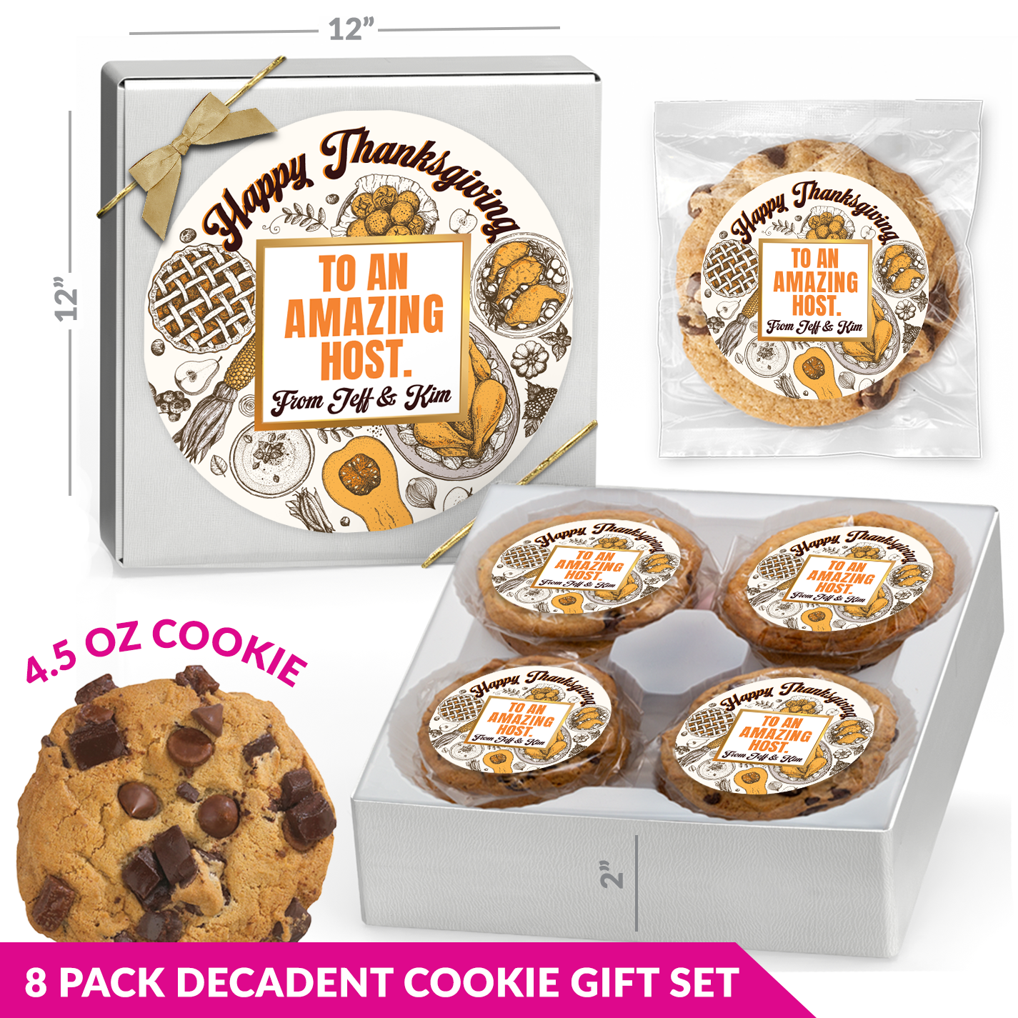 Happy Thanksgiving to an Amazing Host - Custom Decadent Cookie 8-Pack Gift Set w/ Full Color Personalized Sticker