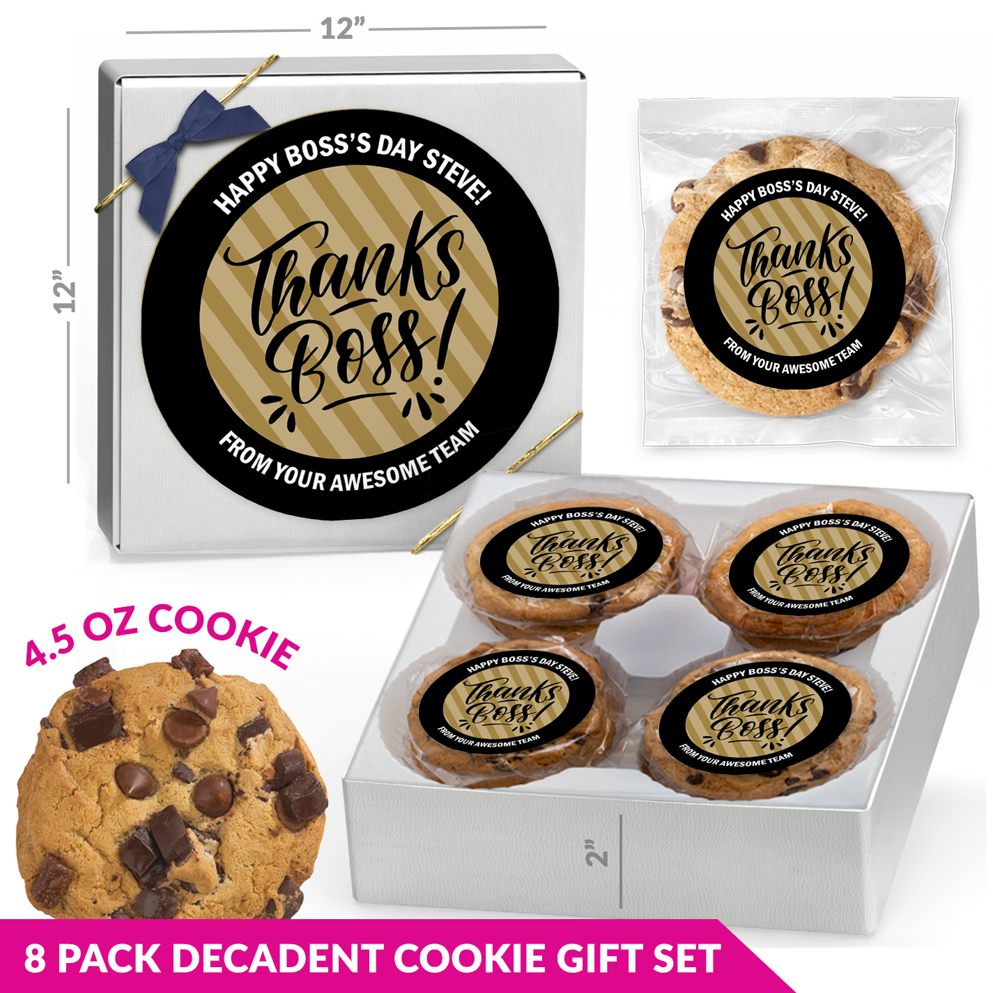 Thanks Boss - Custom Decadent Cookie 8-Pack Gift Set w/ Full Color Personalized Sticker