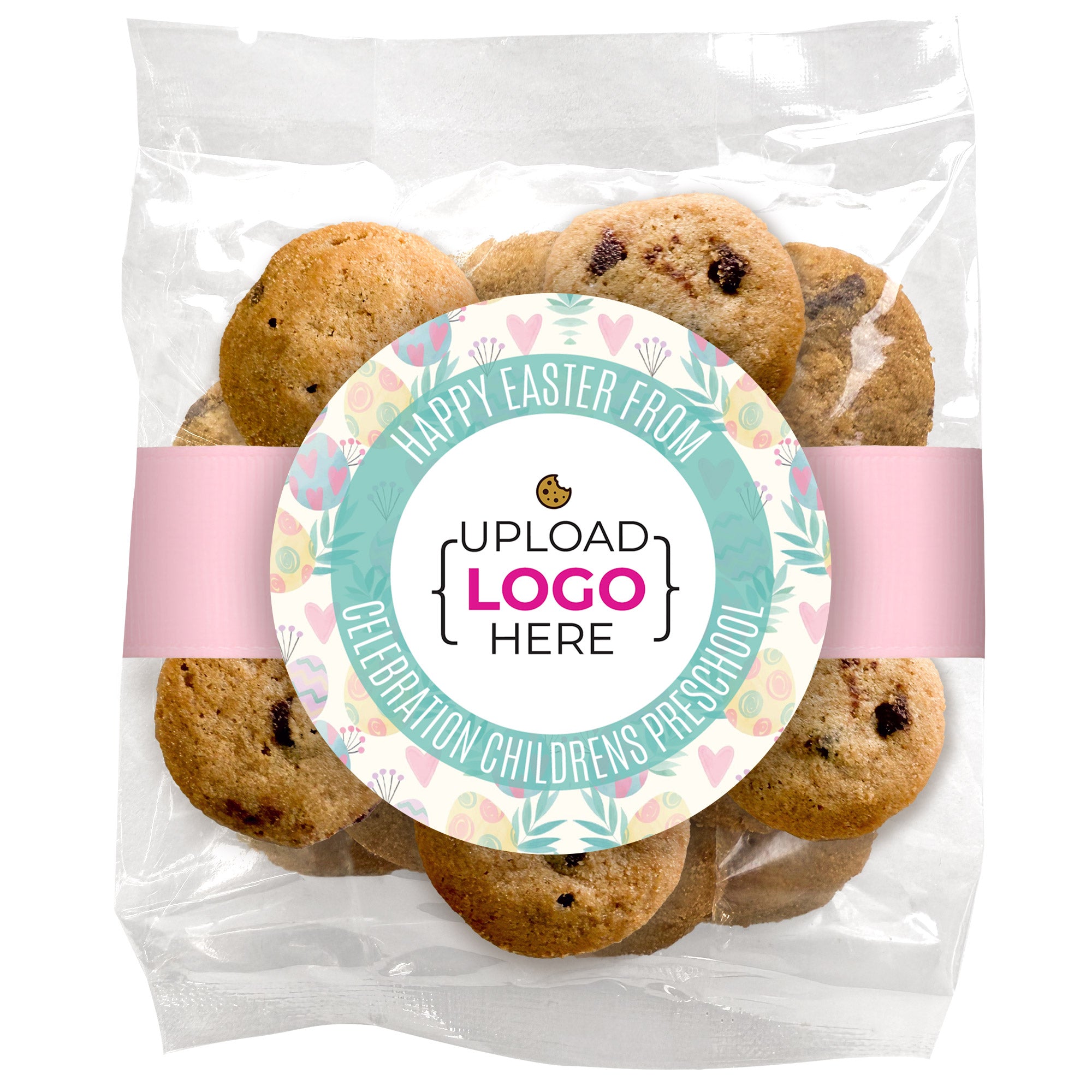Happy Easter Logo Upload - Chocolate Chip Mini Cookies (2 oz) W/ Full Color Custom Sticker & Ribbon