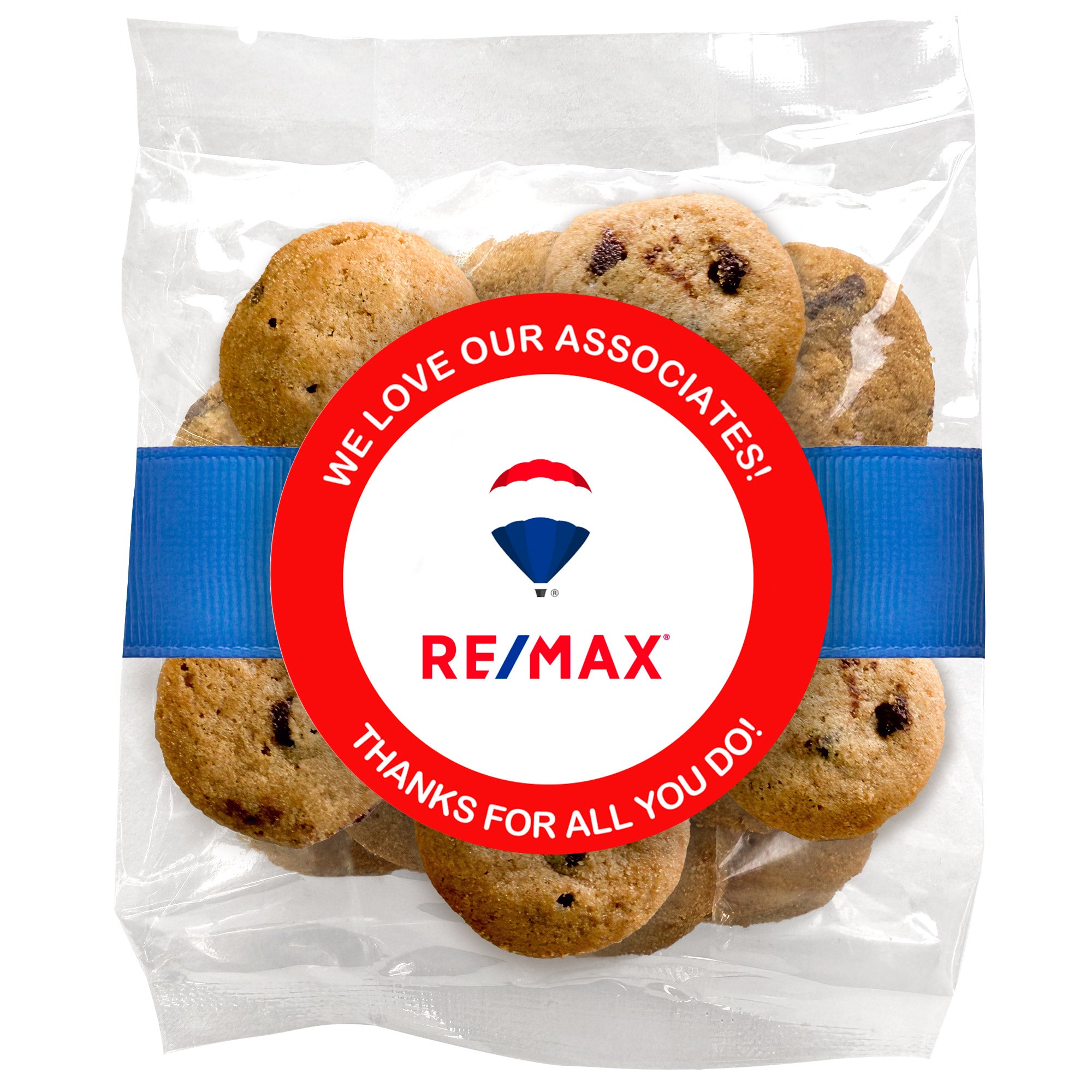 Bite-Sized Chocolate Chip Cookies (2 oz., approx. 14 cookies) W/ Full Color Custom Sticker & Ribbon - Real Estate Logo Upload & Message w/ Color Choice