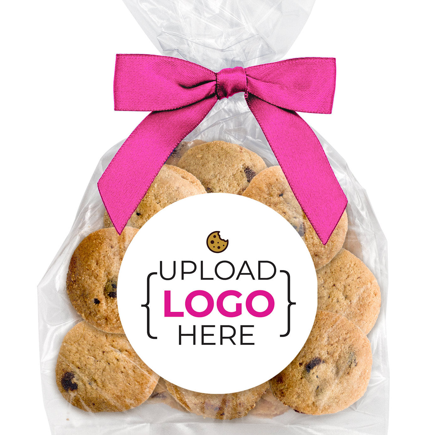 Bite-Sized Chocolate Chip Cookies (2 oz., approx. 16 cookies) W/ Full Color Custom Sticker & Ribbon - Thank you for Donating Blood Logo Upload