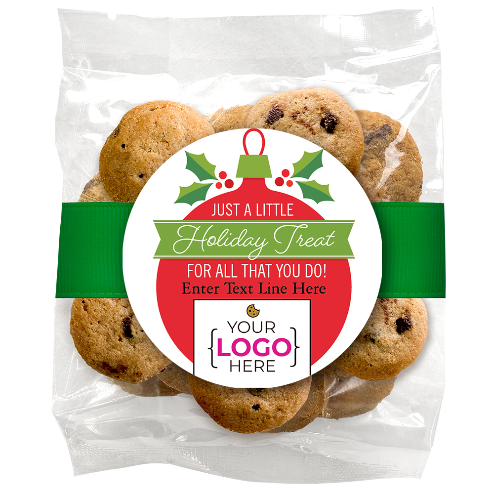 Bite-Sized Chocolate Chip Cookies (2 oz., approx. 14 cookies) W/ Full Color Custom Sticker & Ribbon - Thank you for Donating Blood Logo Upload