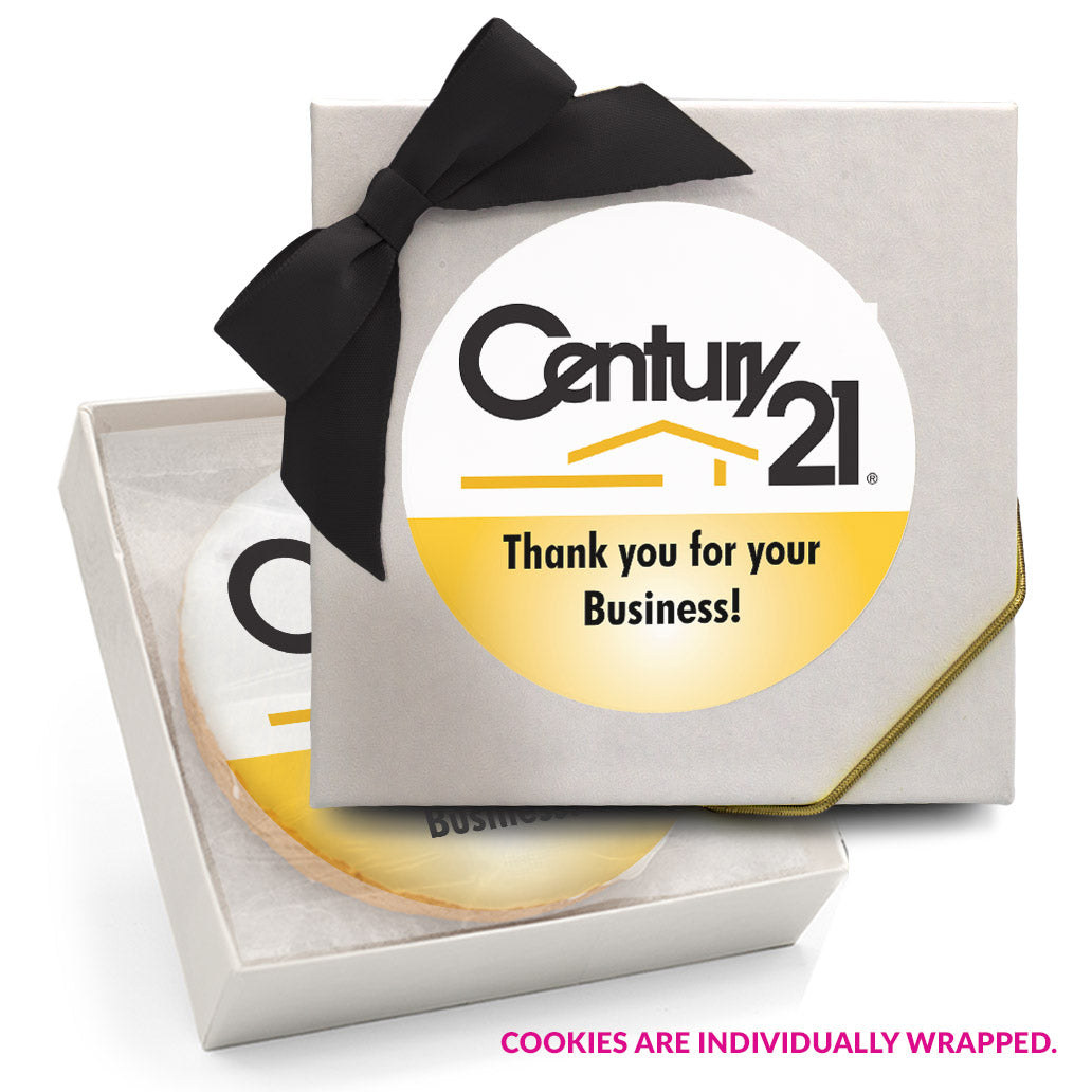 Logo Upload & Message - Personalized Direct Print On Round Sugar Cookie w/ Matching Personalized Favor Box, Sticker & Bow Choice