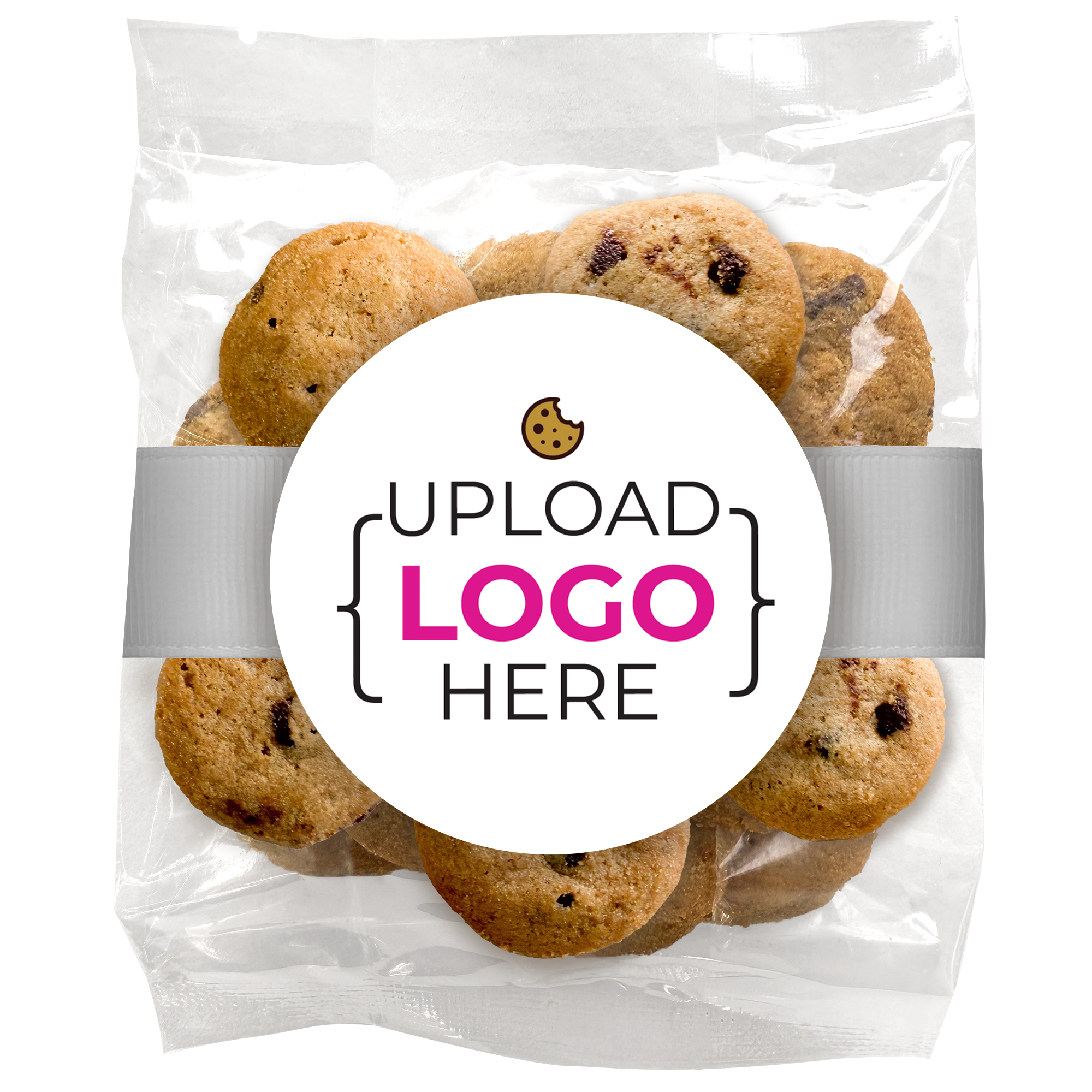 Bite-Sized Chocolate Chip Cookies (2 oz., approx. 14 cookies) W/ Full Color Custom Sticker & Ribbon- Logo Upload