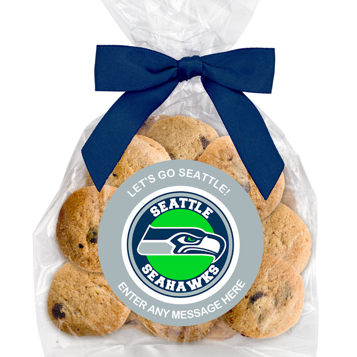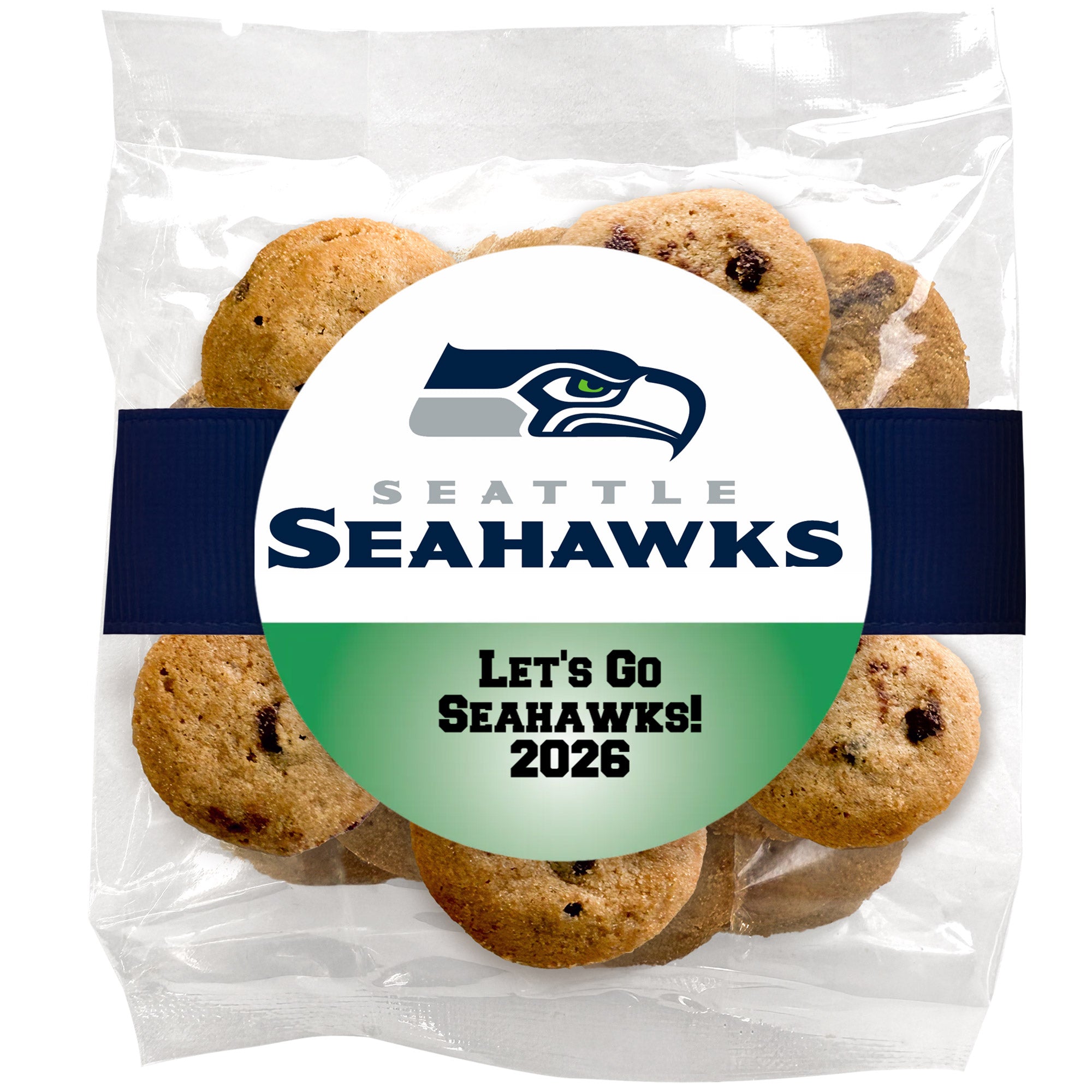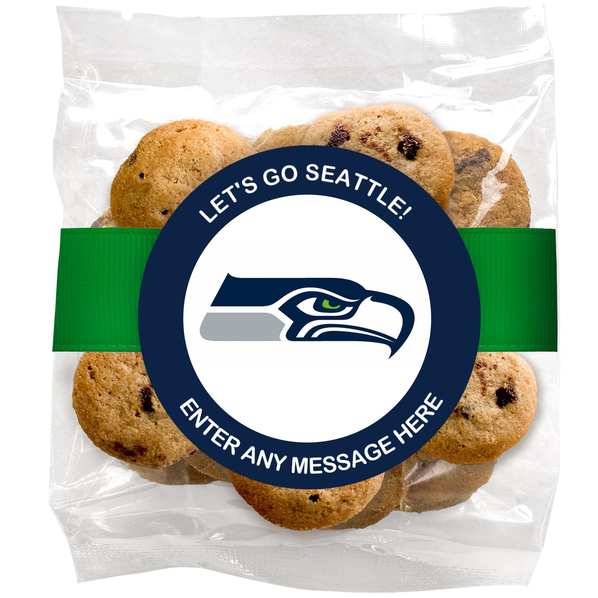 Let's Go! Football Team (Build your own) - Bite-Sized Chocolate Chip Cookies (2 oz., approx. 14 cookies) W/ Full Color Custom Sticker & Ribbon