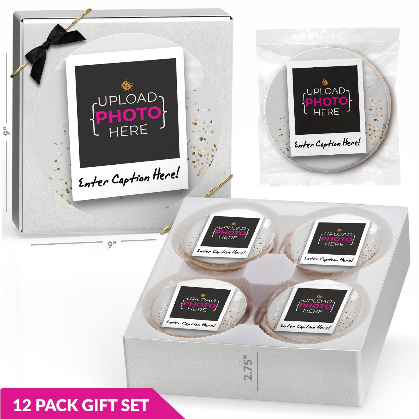 Upload your own Photo - Polaroid & Caption - Personalized Direct Print on Round Sugar Cookie Gift Box