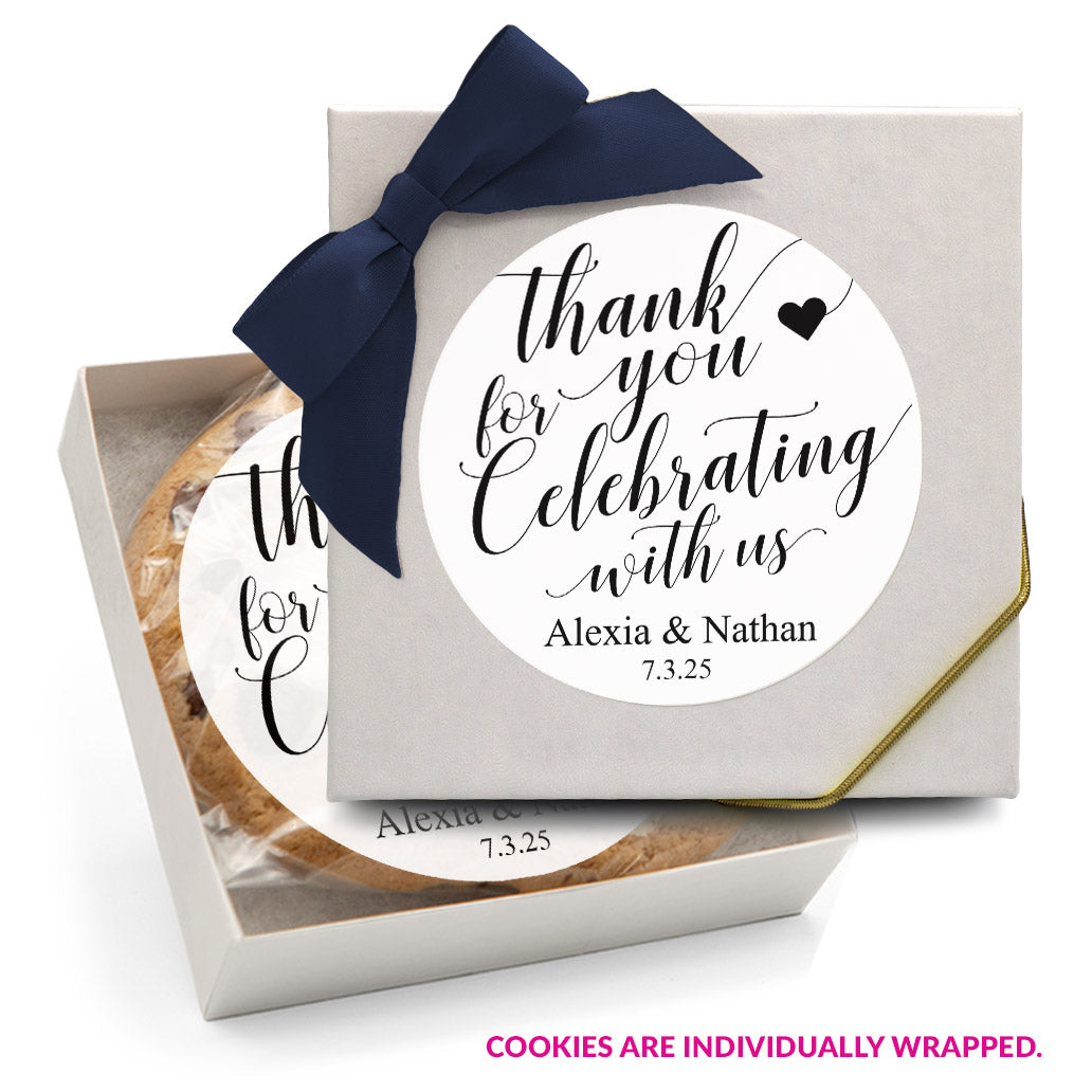 Thank You For Celebrating With Us - Personalized Direct Print On Round Sugar Cookie w/ Matching Personalized Favor Box, Sticker & Bow Choice