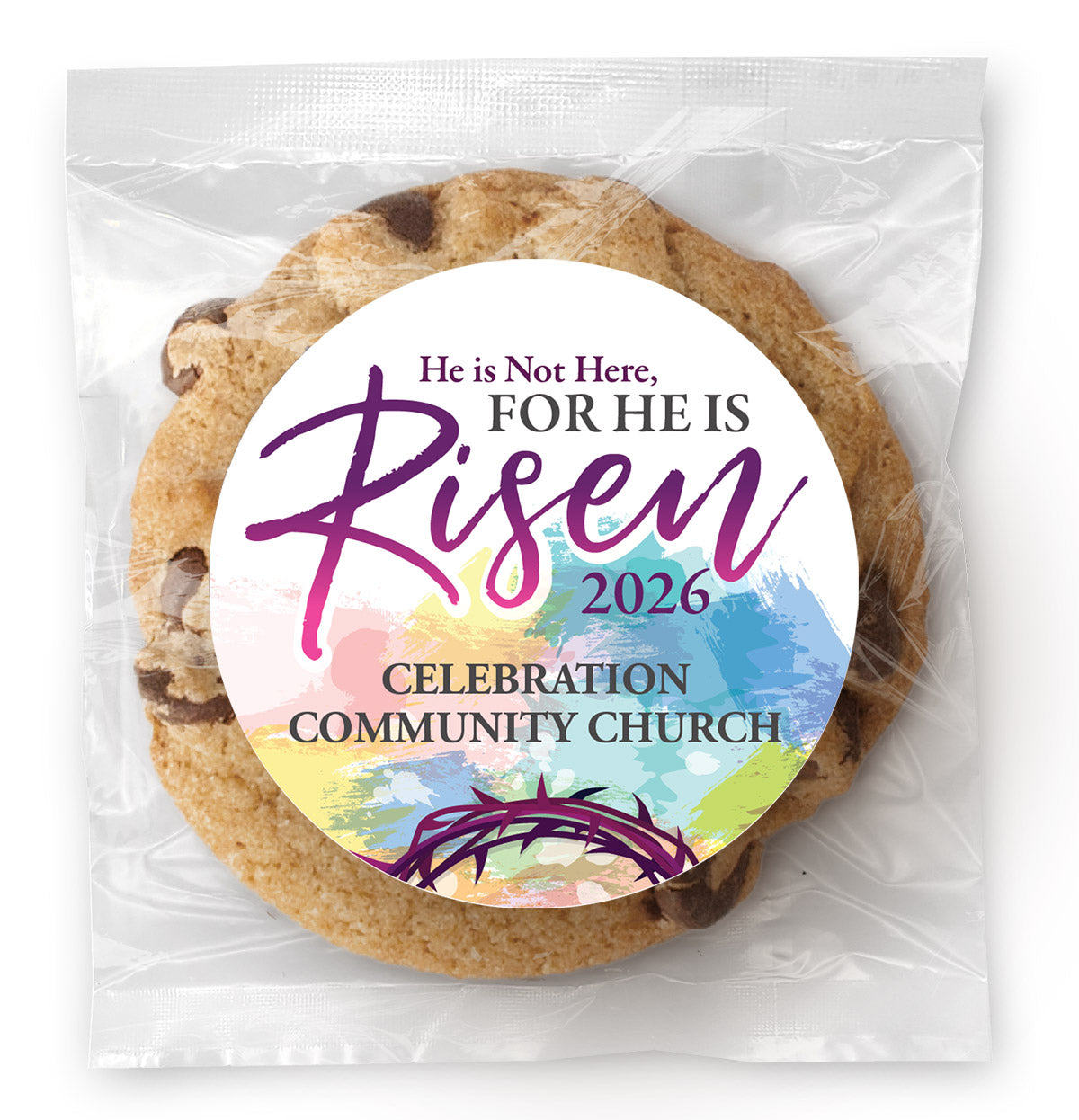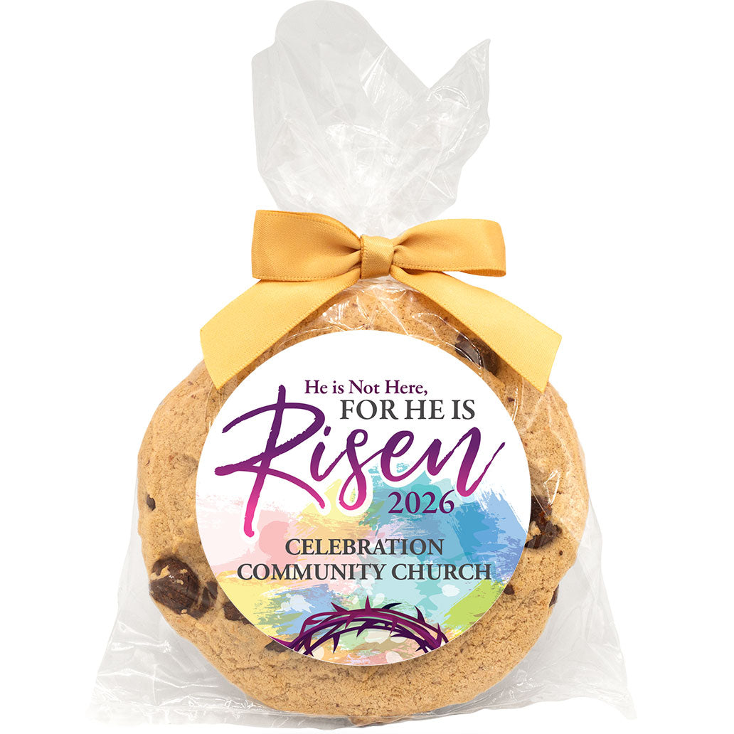 He is Risen Watercolor - Chocolate Chip Mini Cookies (2 oz) W/ Full Color Custom Sticker & Ribbon