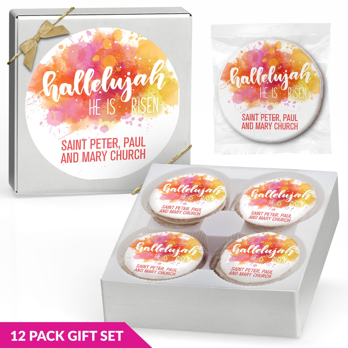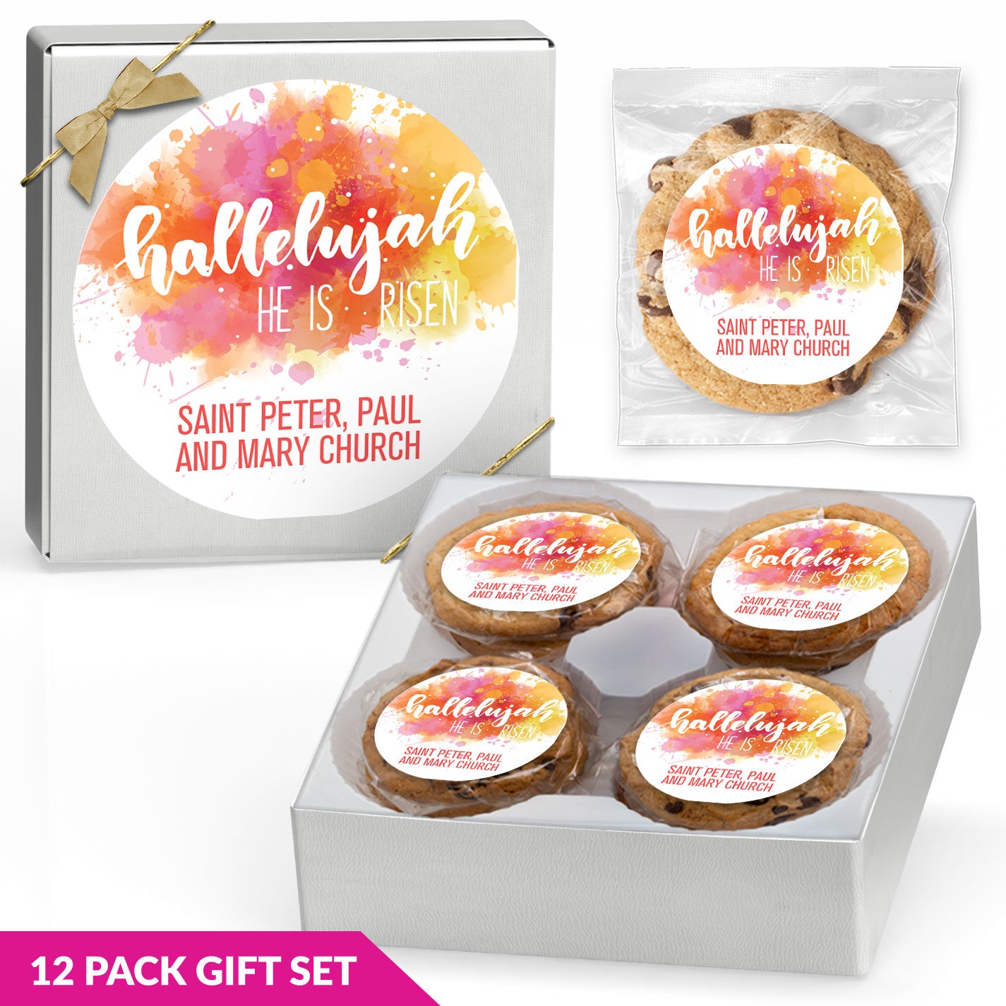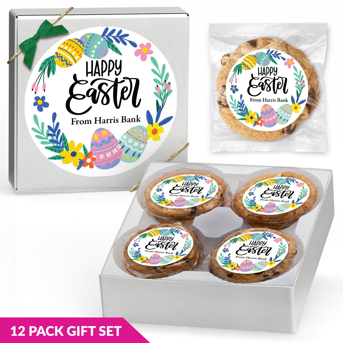 Discover our premium Easter cookie gift sets featuring a dozen freshly baked treats in each gift box. Our Easter cookies are available in two delightful options: direct-printed designs on sugar cookies or gourmet cookies with personalized stickers. Each Easter cookie box includes a matching 7" sticker on top, creating a complete presentation. Perfect for Easter gifts that ship nationwide, these cookies gift boxes bring joy to any celebration. Browse our store for current price and sale items. Add to cart today for a sweet Easter surprise that's sure to make everyone happy!