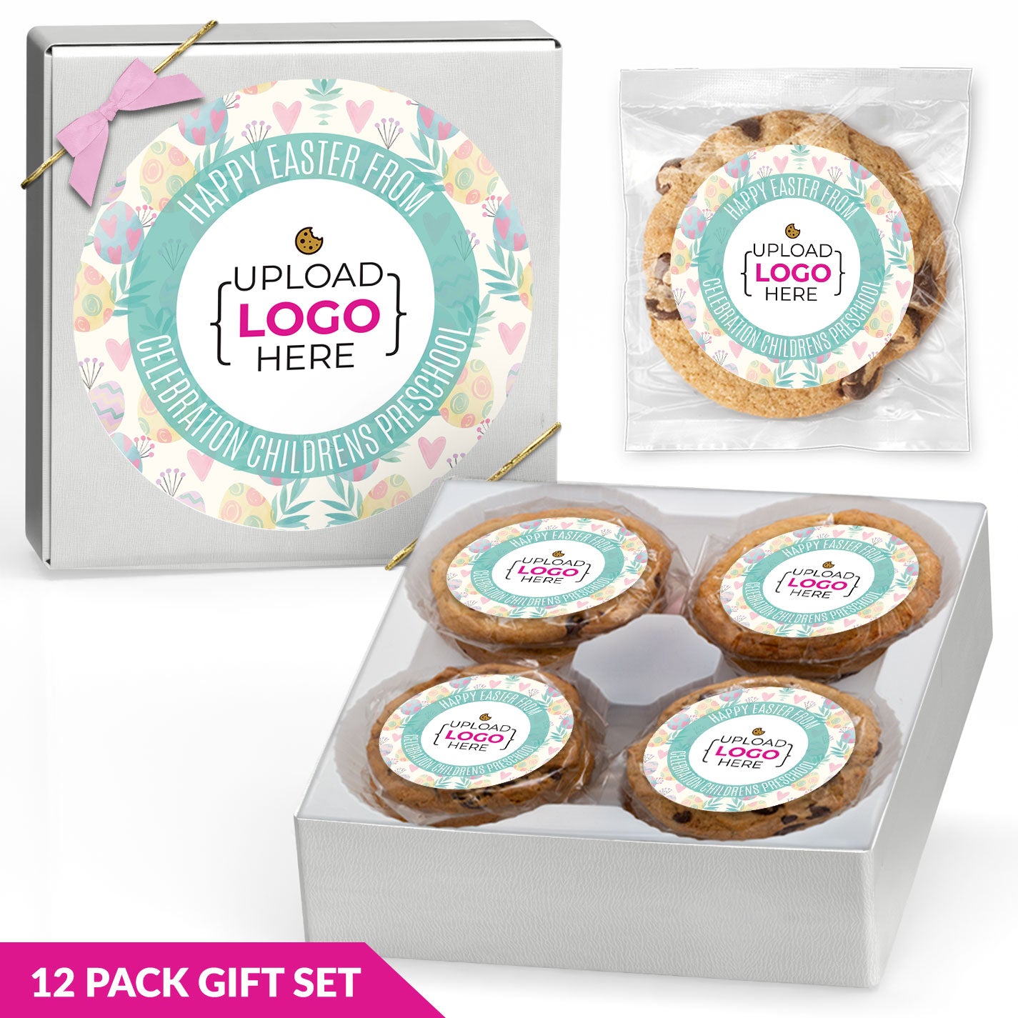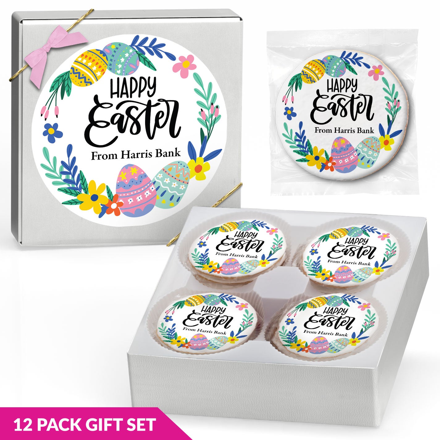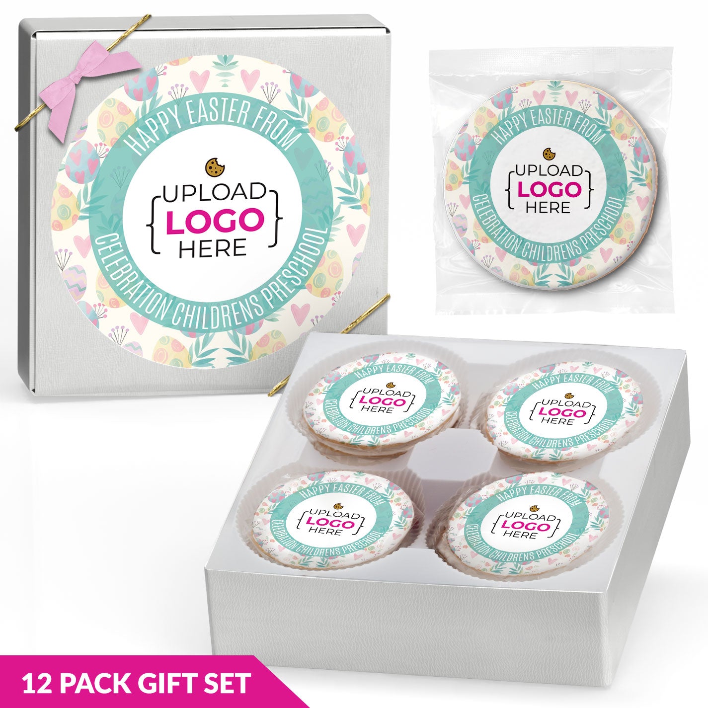 Celebrate spring with our gift boxes filled with delicious Easter cookies! Each box contains individually wrapped treats made with top-quality ingredients. Choose between royal icing sugar cookies with direct-printed custom Easter designs or our gourmet cookie boxes in a variety of mouthwatering flavors. Our Easter cookie gift sets make perfect Easter gifts for family, friends, or business colleagues. Shop our original cookie box collection with customizable options and quick shipping to multiple locations. Add a personalized Easter gift with your own photos, logos, or special messages. Order today and enjoy free shipping on qualifying purchases. Our individually wrapped cookies arrive in beautifully designed gift boxes, sealed for freshness and ready to delight on Easter day.