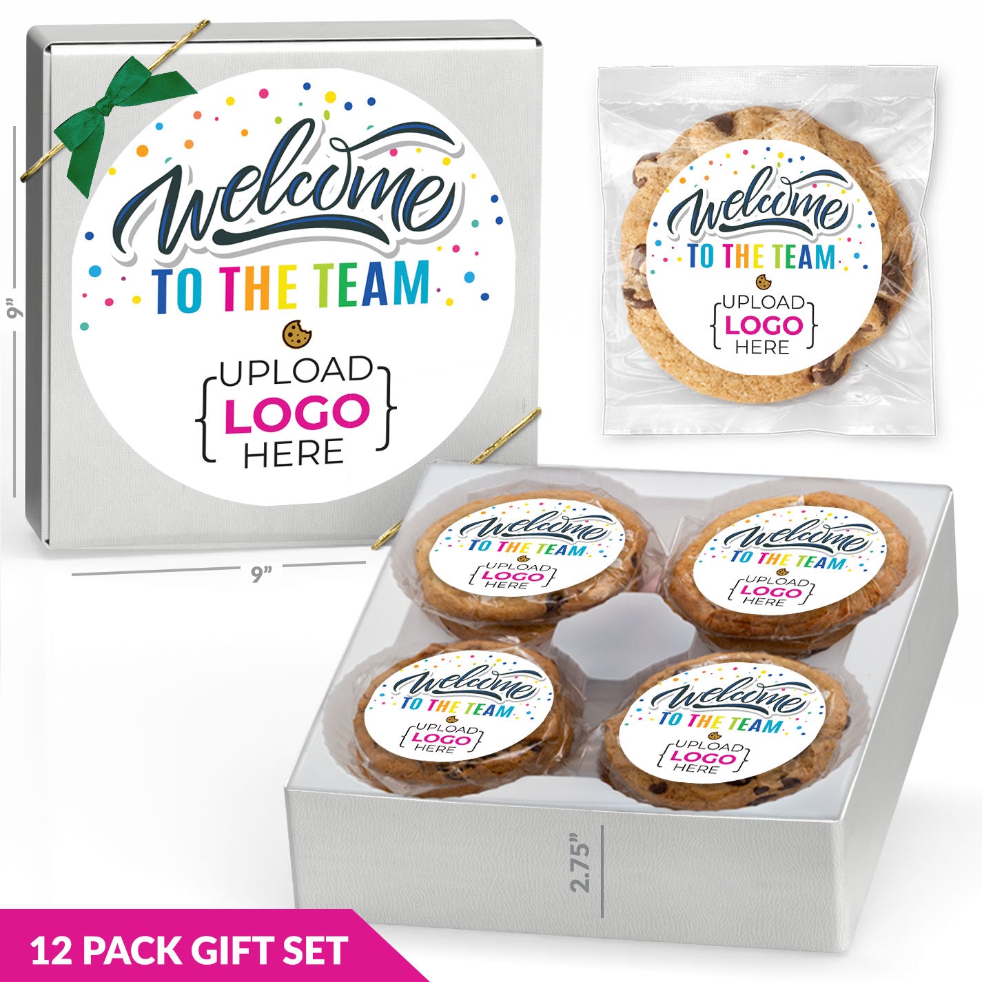 Welcome to the team Logo Upload - Gourmet Chocolate Chip or Variety Pack w/ Full Color Personalized Sticker Gift Set