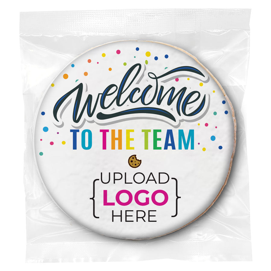 Show appreciation to your employees with our "Personalized Welcome to the team Logo Upload - Direct Print on Round Sugar Cookies. Customize it with your logo for a thoughtful gesture.