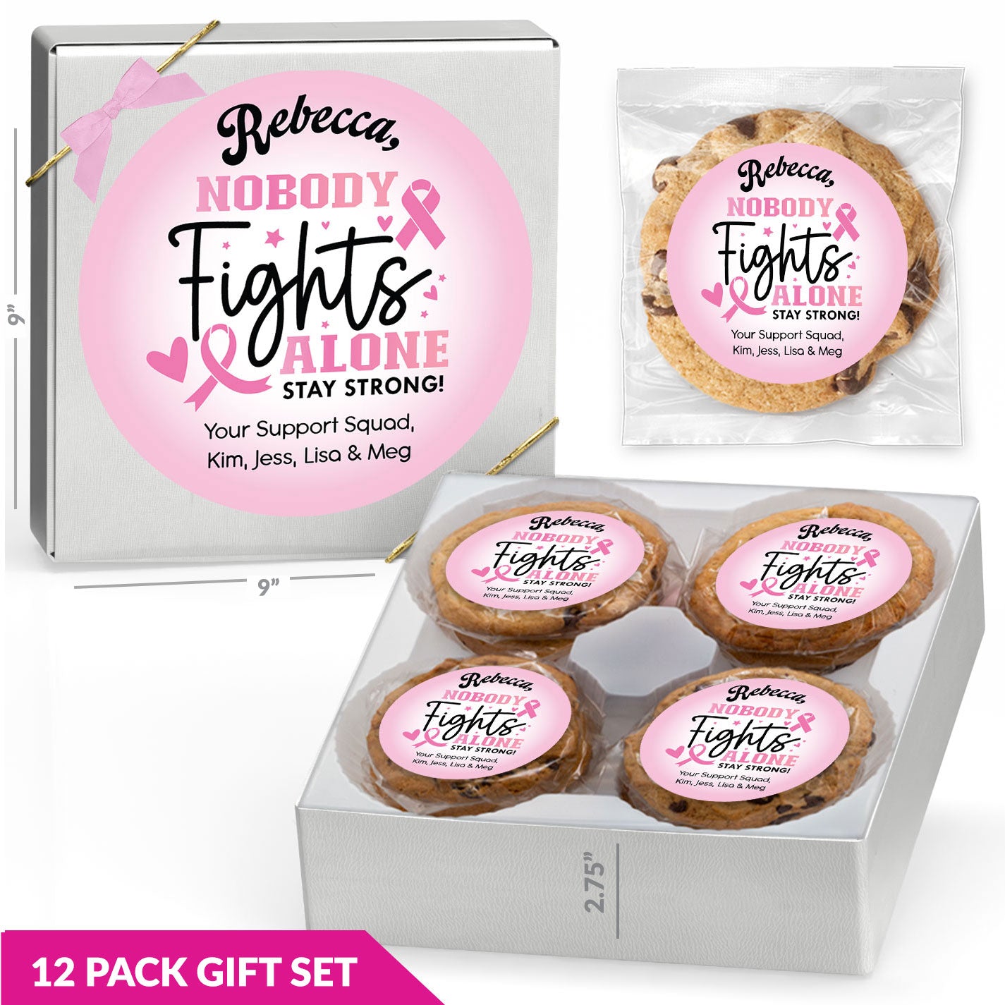 Nobody Fights Alone Breast Cancer - Personalized Direct Print on Round Sugar Cookie Gift Set